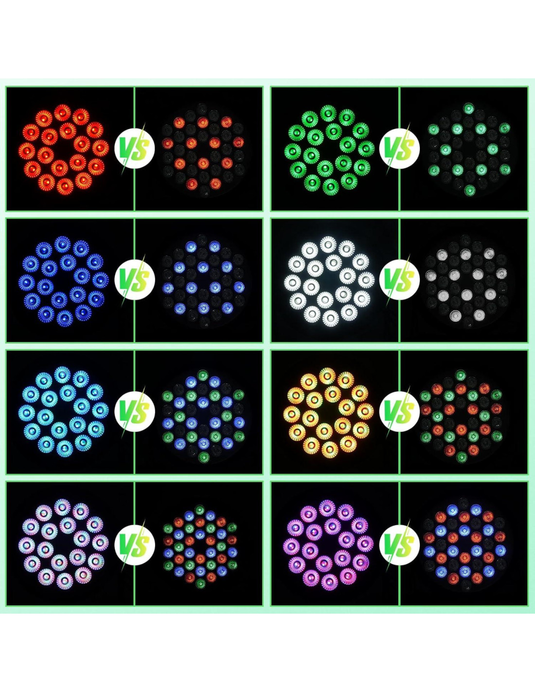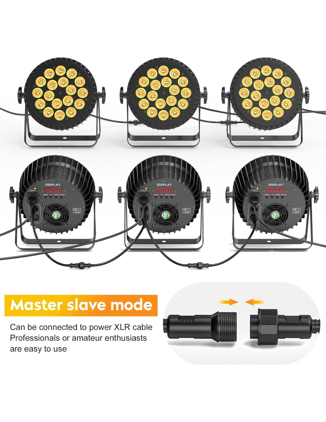 - [Efectos de Iluminación Ricos] Esta luz par LED con 18 LEDs mezcla colores RGBW con efecto de lavado para iluminación de escenario y luces de fiesta DJ. Tiene múltiples colores: rojo, verde, azul, blanco, cuatro colores que se pueden atenuar de forma independiente. (Control remoto no incluido)