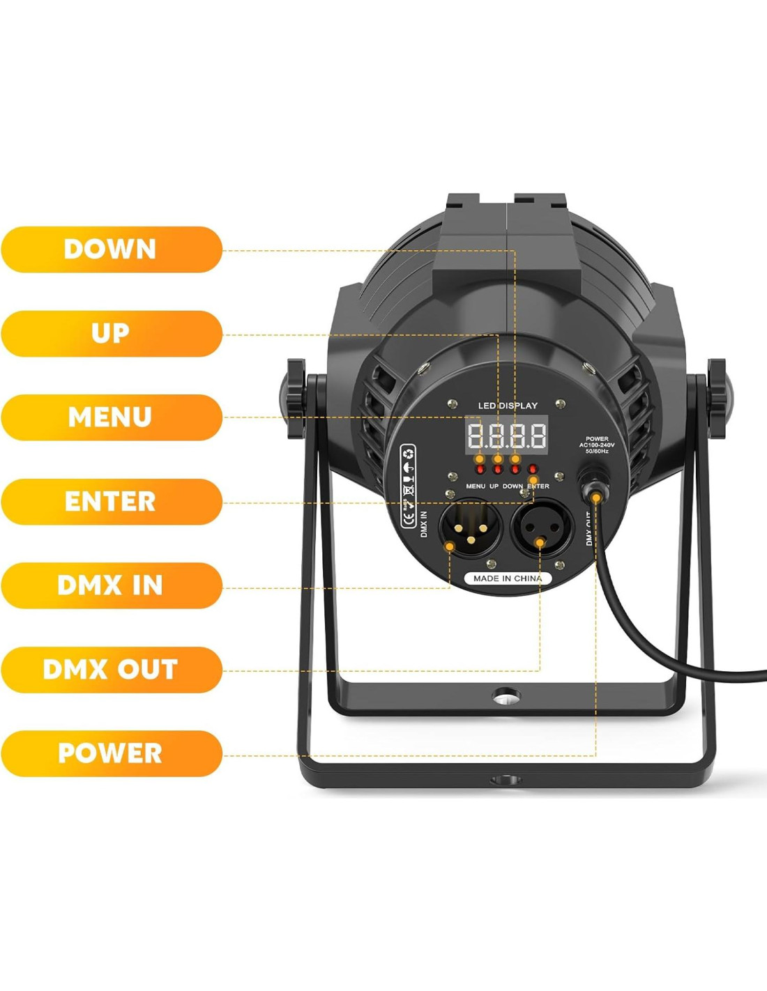 - [Luz de Escenario Multifuncional] Esta luz de escenario tiene varios modos que incluyen DMX, automático, activado por voz, automático y maestro-esclavo. Puedes usar DMX para controlar múltiples luces a la vez. Tanto profesionales como aficionados pueden crear fácilmente un efecto de iluminación asombroso.