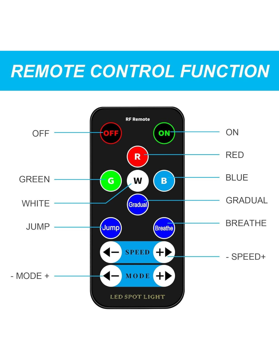 - Diseño Amigable para el Usuario: Compacto y ligero, este foco de bola de discoteca es fácil de instalar con el soporte estándar incluido. El cable de alimentación de 3.9 pies (1,19 m) proporciona una longitud suficiente, eliminando la necesidad de cables de extensión adicionales. La mini luz pinspot viene acompañada de un potente control remoto RF, que permite un ajuste fácil de colores, modos y controles de potencia. Disfruta de un control conveniente al alcance de tu mano.
