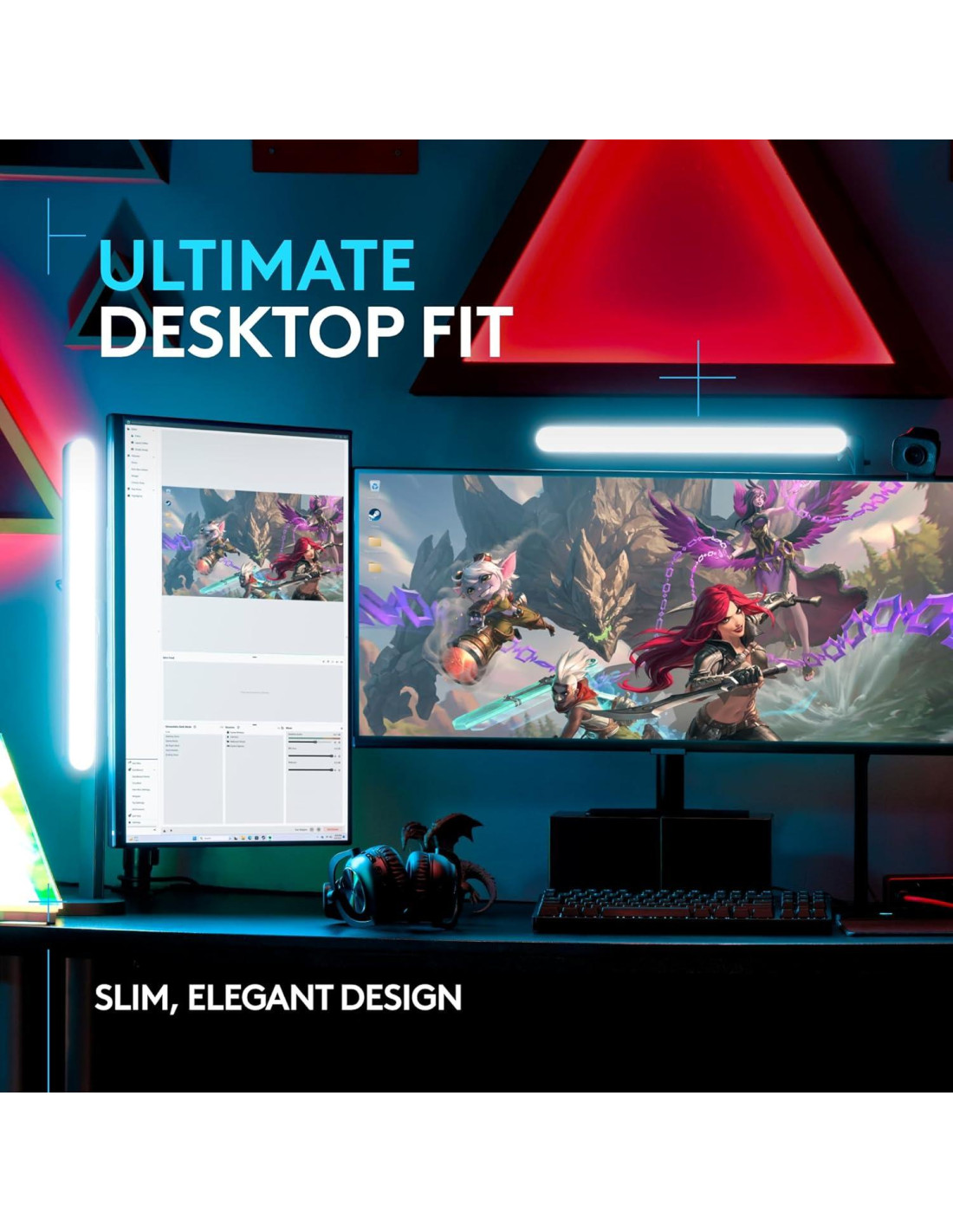 - El ajuste perfecto para el escritorio: El diseño delgado y elegante va donde otras luces no pueden, facilitando lograr efectos de iluminación profesional en tu espacio de juego