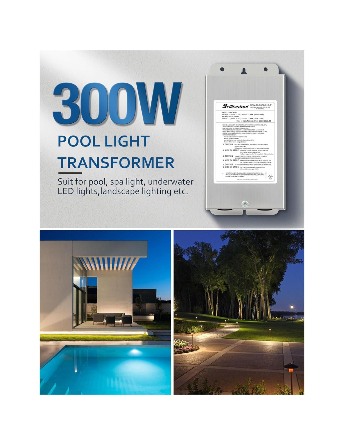 - [Seguro y confiable] El transformador aprobado por UL ofrece un voltaje seguro para la luz de piscina. La protección de circuito incorporada desconectará la energía al transformador en caso de defecto o sobrecarga.