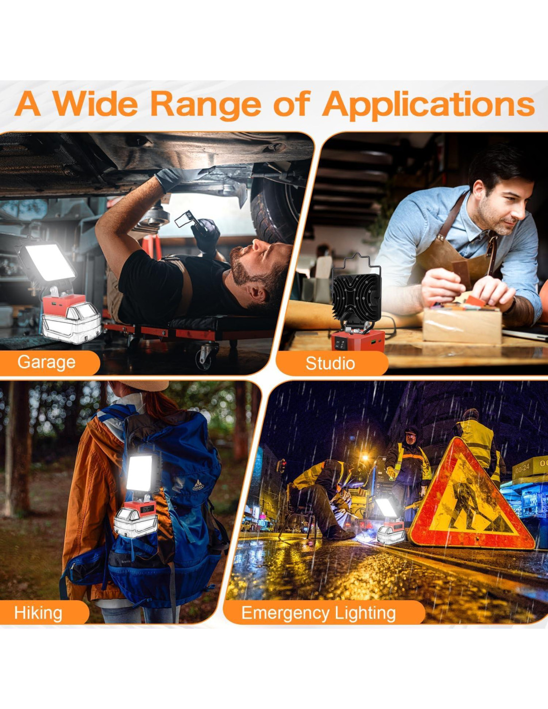 - [La luz de trabajo LED está construida para resistir condiciones difíciles con su clasificación de impermeabilidad IP65, asegurando que se pueda usar de manera segura al aire libre incluso en clima lluvioso. La carcasa de aluminio única, que es resistente a impactos y corrosión, disipa el calor de manera eficiente y rápida. Los ganchos están cuidadosamente diseñados con la forma de línea única que hace que tu luz de inundación ya no se incline al colgar. Tiene un rendimiento estable y potente con una vida útil esperada de más de 50,000 horas]