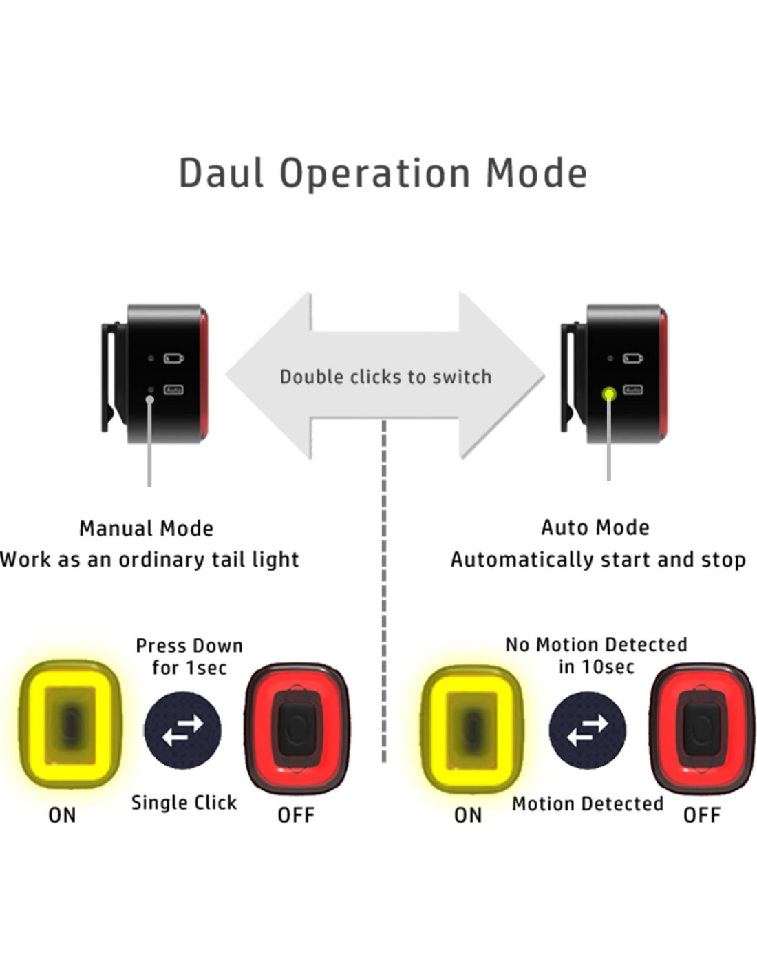 La luz trasera inteligente CUBELITE II adopta tecnología avanzada y tecnología de producción de vanguardia, creando un producto versátil que puedes usar de manera confiable en cualquier situación. El lado trasero del CUBELITE II tiene un clip en forma de L, aumentando enormemente su versatilidad, haciéndolo perfectamente compatible con bolsas traseras para bicicletas y mochilas de exterior. CUBELITE II integra una matriz de sensores MEN de alta sensibilidad que detecta si la bicicleta está desacelerando. La alta frecuencia de verificación asegura una mejor respuesta cuando la velocidad de la bicicleta cambia, activando así una detección de freno muy precisa. Un potente procesador ARM de 32 bits asegura una respuesta más rápida. Las luces LED de doble canal COB aseguran una luz más pronunciada y notable al frenar, garantizando tu seguridad al montar. También tiene un modo automático/manual que pone la luz en espera si no se detecta movimiento durante 10 segundos. Con una batería recargable de 400mAh, puede funcionar hasta 30+ horas, extendido por el modo de inactividad automática. El CUBELITE II pesa menos de 28.35 gramos (1 Onza) y se puede instalar cómodamente en muchos tipos de asientos, barras de asiento, montajes para mochilas, scooters, montajes para cascos, sillas de ruedas, etc. Con una carcasa exterior construida con aleación de aluminio 6061, la tecnología de producción avanzada asegurará tanto su fiabilidad como durabilidad. CUBELITE II detecta la luz ambiental y cambia automáticamente entre modos de día y noche. También tiene un modo automático/manual que pone la luz en espera si no se detecta movimiento durante 10 segundos. El producto está equipado con la última tecnología de carga USB Micro, y se incluye un cable de carga en el paquete que es compatible con tu coche o cualquier dispositivo con puerto USB.