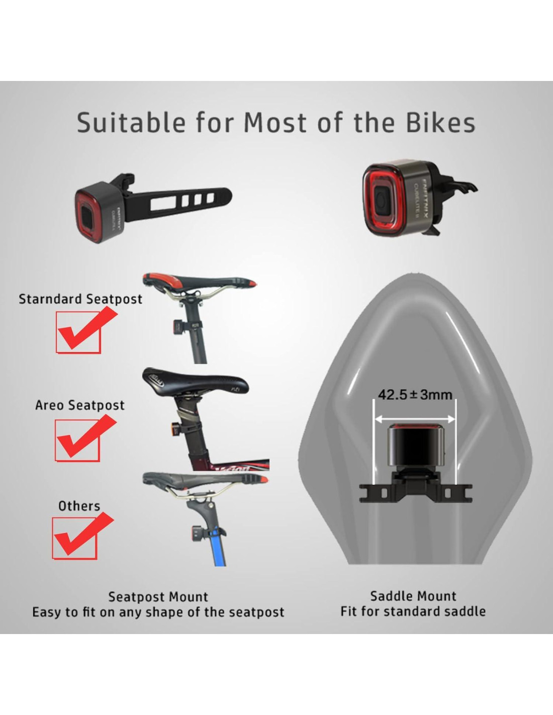 - [Fácil Instalación] Solo necesita unos segundos para instalarse, incluso sin herramientas. El Cubtelite II pesa menos de 28.35 gramos (1 oz.) y puede encajar cómodamente detrás de cualquier asiento, cascos, alforjas, mochilas, patinetas, scooters, cochecitos, sillas de ruedas o collares para perros, etc. También puede funcionar como una linterna de mano, una técnica de producción madura y sofisticada asegurará su fiabilidad y durabilidad, con los 3 modos haciéndote a ti y a tu bicicleta los más brillantes en cualquier situación.