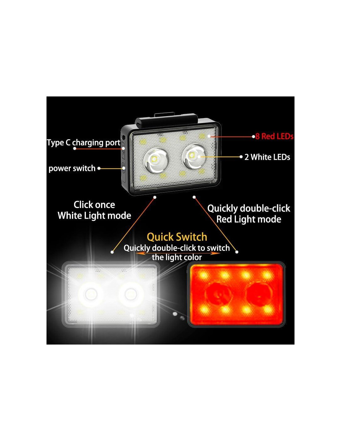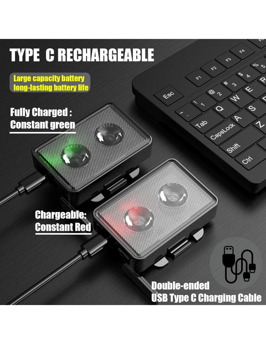 - 2. Carga Rápida por USB-C (Cable 2-en-1) y Batería de 900mAh Carga simultáneamente las luces de bicicleta delanteras y traseras en 1.5 horas a través del cable USB Tipo-C 2-en-1 incluido. El puerto de carga resistente a la lluvia protege contra salpicaduras, mientras que la batería de alta capacidad de 900mAh ofrece hasta 10 horas de funcionamiento - perfecto para desplazamientos nocturnos o viajes de camping
