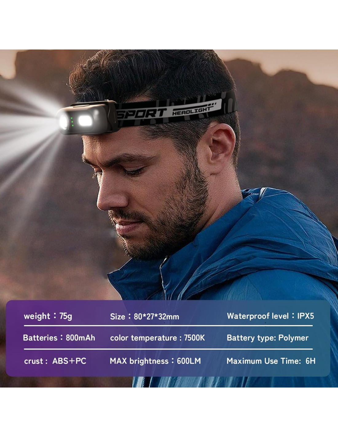 - [Carga Tipo-C & IPX5 impermeable] La punta de la lámpara frontal puede ajustar el ángulo de iluminación (hasta 60 grados), la lámpara frontal recargable tiene una batería de alta calidad de 800mAH que se puede cargar completamente en solo 2 horas, con un tiempo de iluminación de baja luminosidad de 6 horas y un tiempo de iluminación de alta luminosidad de 3 horas. Se puede reutilizar cargando y descargando, no es necesario reemplazar la batería, y es económico. Tiene IPX5 impermeable.