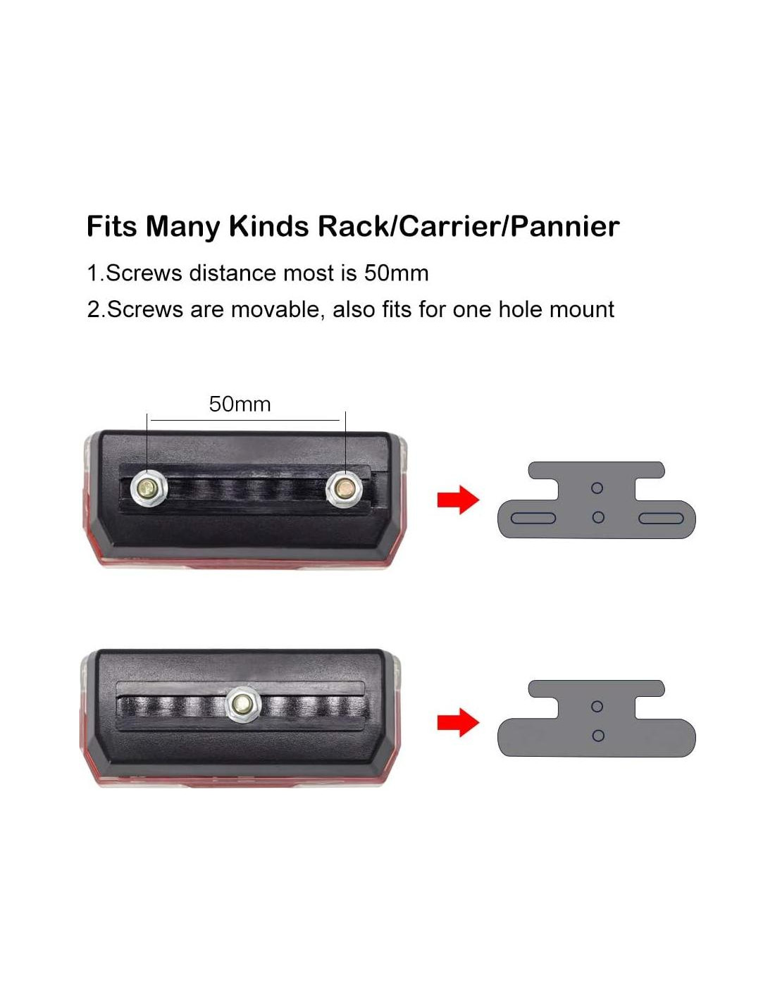 - 2. Instalación Fácil: Instalación sin herramientas en el soporte trasero de la bicicleta, los tornillos son movibles, se ajusta a muchos tipos de carga de bicicleta (se ajusta a agujeros de montaje de 0mm-50mm).
