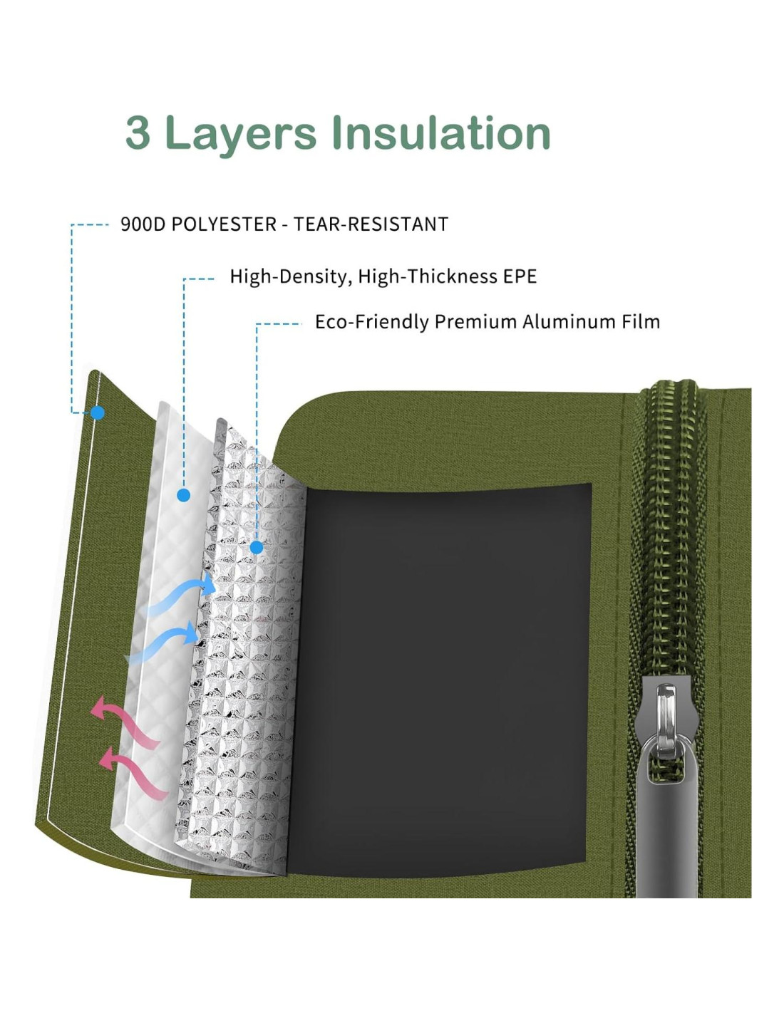 - MATERIAL SUPERIOR: Bolsa de almuerzo reutilizable con aluminio reforzado impermeable y tres capas de aislamiento. Proporciona un excelente rendimiento térmico, durabilidad y fácil limpieza. Mantiene la comida fría o caliente durante 3-4 horas. A prueba de fugas, ligera y cuenta con un mango suave para mayor comodidad.