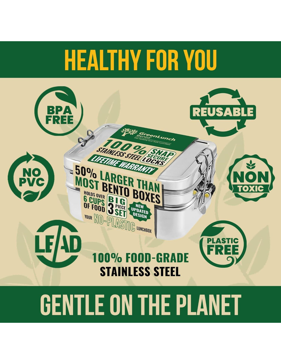 - NUEVO (2023) DISEÑO RESISTENTE A GRIETAS: Lo has pedido, y lo hemos entregado; una caja bento de acero inoxidable que sostendrá tus almuerzos favoritos sin dividirse en las esquinas. Le hemos dado al original GreenLunch Bento un gran cambio; ahora puede contener tus almuerzos perfectamente empacados y sin desperdicios para toda la vida - ¡sin agrietarse, nunca!
