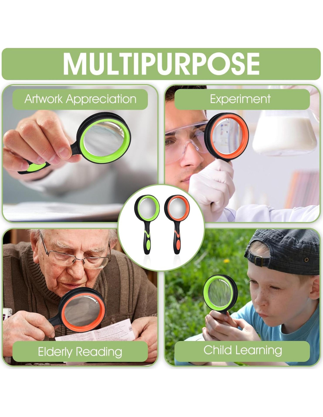 - [Amplia Aplicación] - Cuando los niños usan estas lentes de aumento para explorar la naturaleza y observar animales o plantas, les brindarán mucha diversión y una experiencia diferente; Al mismo tiempo, también pueden permitir que los ancianos revisen fácilmente libros, periódicos, etiquetas, instrucciones de botellas de medicina, sellos, etc.