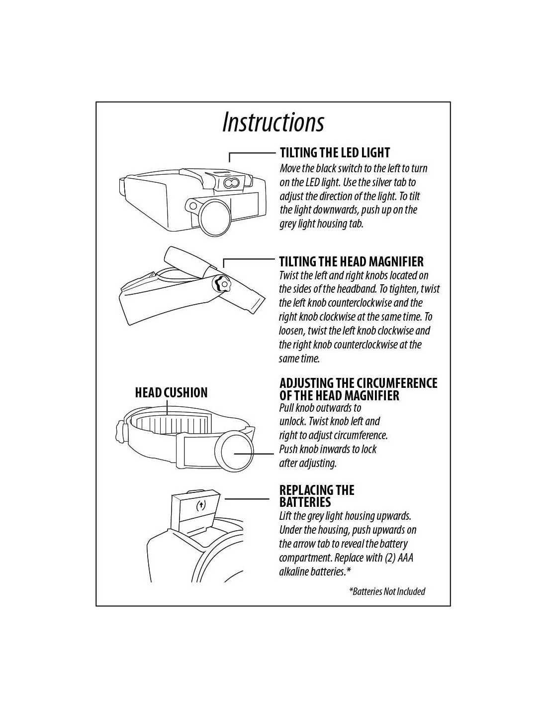 - Componentes incluidos: Correa de cabeza ajustable, Lupa de Cabeza LED