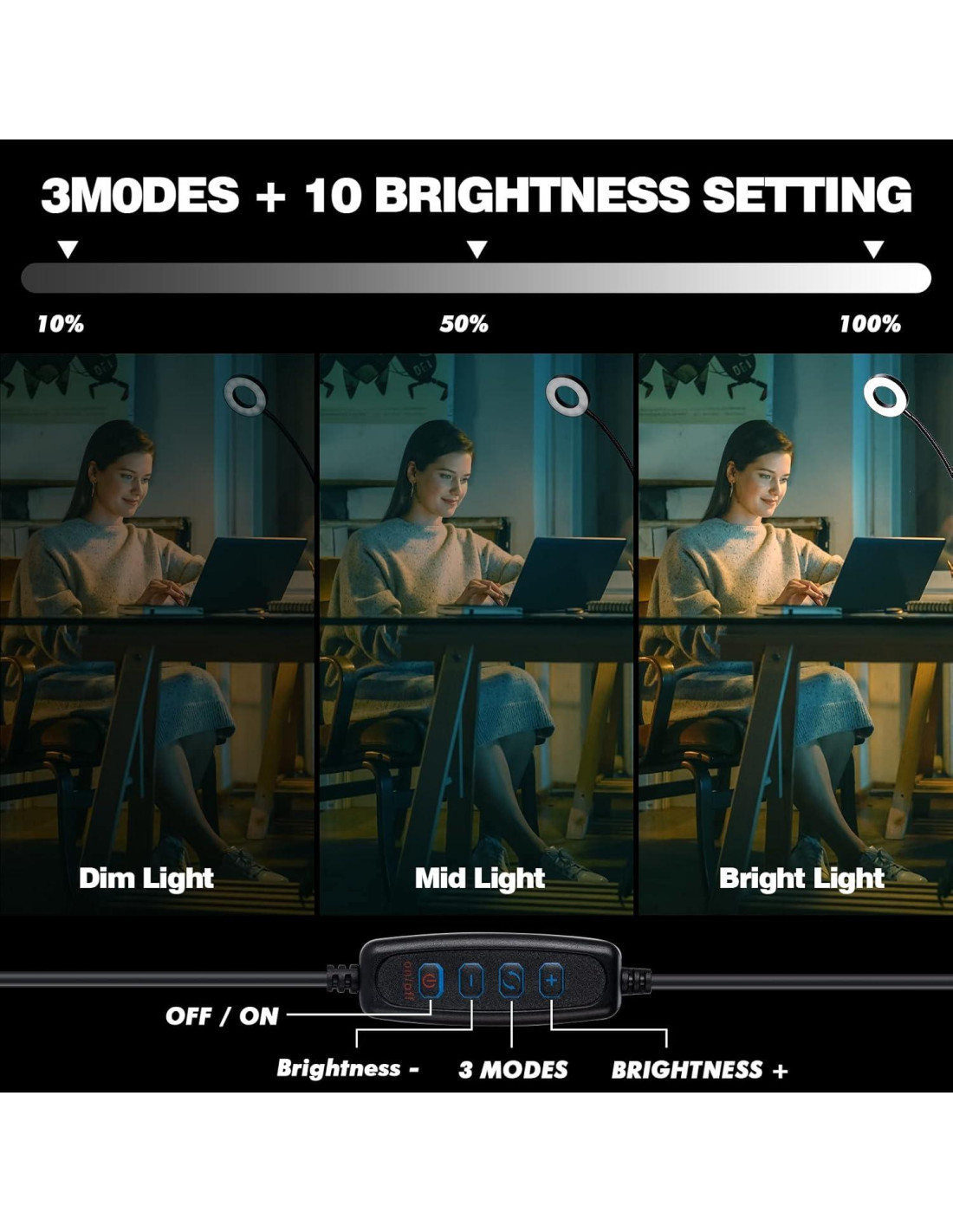 - [Brillo Regulable y Color de Luz] Esta luz de libro tiene 3 temperaturas de color y 10 niveles de brillo. Puedes obtener 30 modos de iluminación para satisfacer diferentes requisitos en la lectura de libros, conferencias por video, reuniones por zoom, etc.