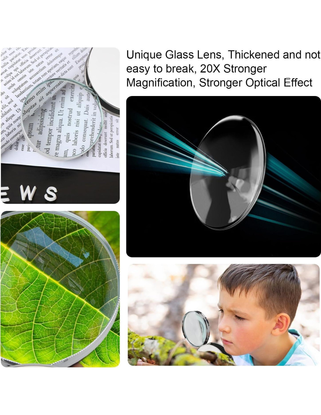 - AUMENTO 20X: Puedes usar las lupas para examinar detalles y objetos pequeños. La mini lupa es adecuada para examinar monedas, impresiones finas, joyería, sellos y más
