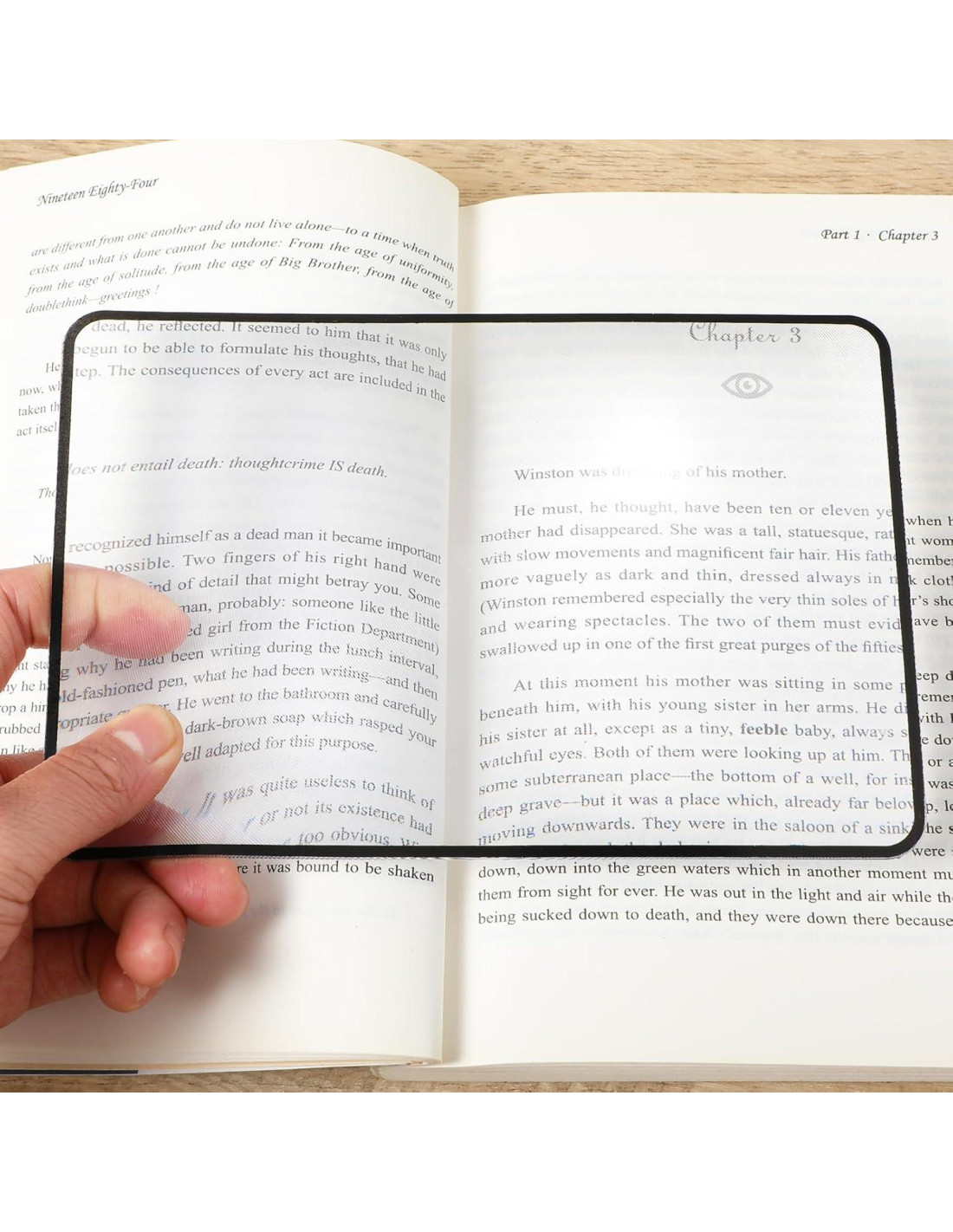 - Área de Visualización Amplia Lupa Esta hoja de aumento proporciona un área de visualización generosa con dos tamaños: 12x18cm y 8.5x5.5cm, ofreciendo una vista ampliada para lectura detallada.