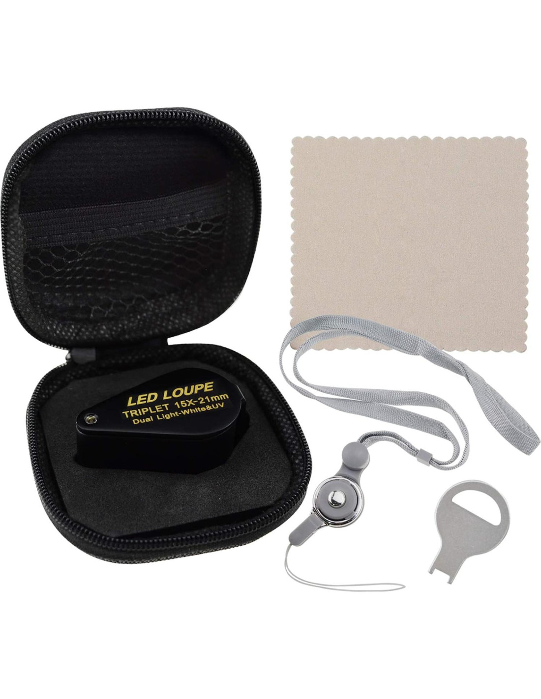 - KIT PROFESIONAL: incluye lupa de joyero 15x, estuche protector de alta calidad, paño de limpieza de lentes y cordón de lanyard desmontable rápidamente. Un kit listo para usar diseñado tanto para aficionados como para profesionales