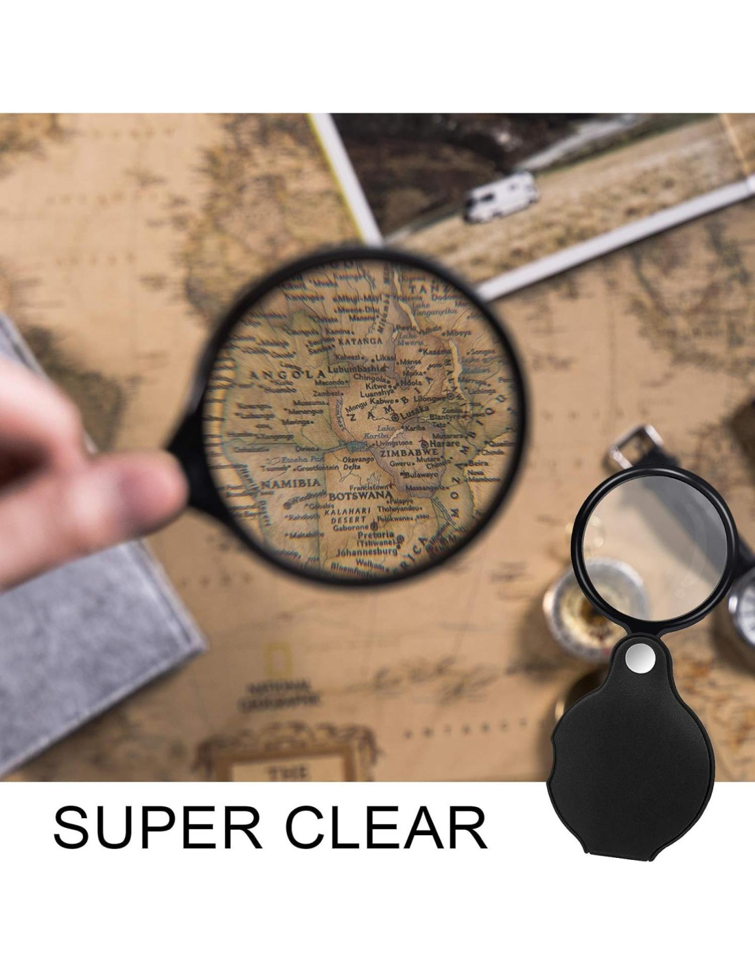 - 5 paquetes de mini lupas de bolsillo, que se pueden rotar 360 para abrir, fácil de poner en tu bolsillo
