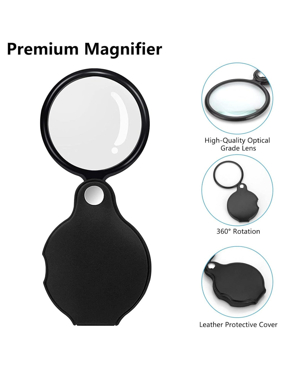 - MATERIAL PREMIUM: La lupa de bolsillo está hecha de lente de grado óptico de alta calidad. La funda de cuero premium en su carcasa puede proteger la lente muy bien sin preocuparse por rasguños o daños. Puede usarla de manera segura y cómoda.