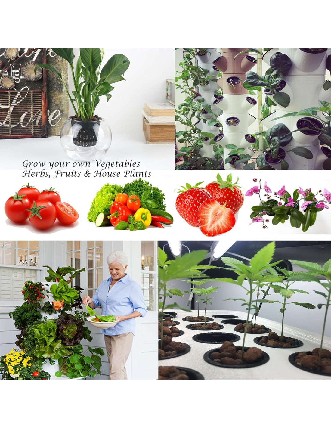 - En cualquier lugar durante todo el año proporciona verduras frescas: nuevos métodos de cultivo con pellets de arcilla y lana de roca para proporcionar verduras frescas y deliciosas durante todo el año, incluyendo invierno, hierbas pequeñas como lechuga, tomates, perejil, pimientos, albahaca, romero, fresas, cebollinos, cilantro, lavanda, bálsamo de limón, orégano, menta, salvia, estragón, tomillo, ensalada de rúcula, berros, espinacas, mostaza y plantas carnívoras, etc. Cesta de injerto para invernadero, alféizar de ventana, porche cerrado, sótano, terraza, jardín de invernadero.