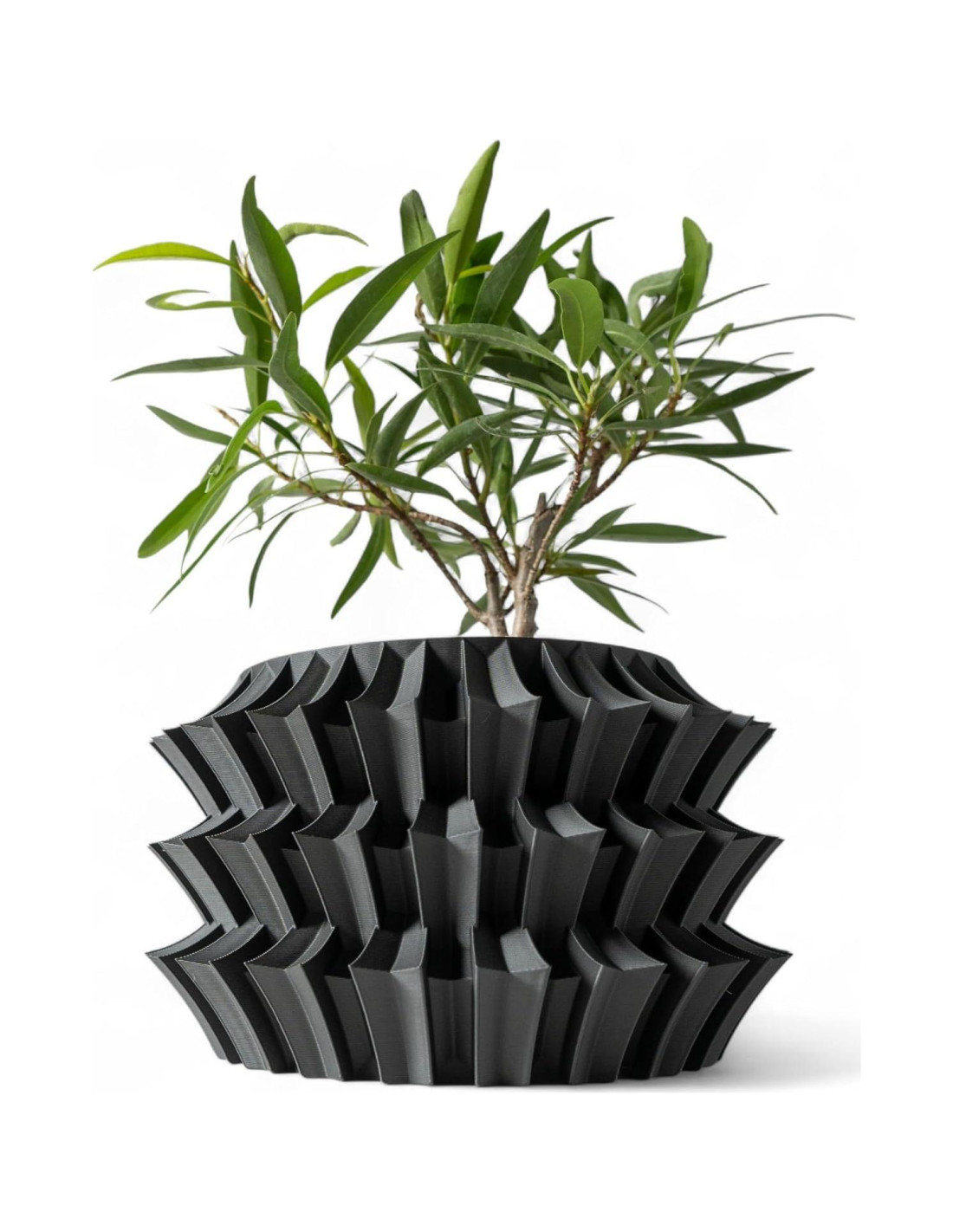 Conoce la Maceta Shogun - donde la forma antigua se encuentra con el diseño futuro. Esta maceta geométrica negra es más que solo un recipiente - es una pieza de declaración. Inspirada en la elegancia de la armadura japonesa y la simetría de la estética de ciencia ficción, su estructura apilada aporta un carácter audaz a cualquier espacio. Diseñada para los amantes de las plantas modernas, cuenta con un orificio de drenaje incorporado para mantener saludables tus suculentas, orquídeas, hierbas y bonsáis. El acabado mate negro realza la vegetación y añade un contraste elegante a tu estante, escritorio o entrada. Lo suficientemente compacta para escritorios y lo suficientemente duradera para el uso diario, es una adición ideal a tu hogar o un regalo perfecto para los amantes de las plantas. Haz que tu jardín interior sea legendario - lleva a casa la Shogun.