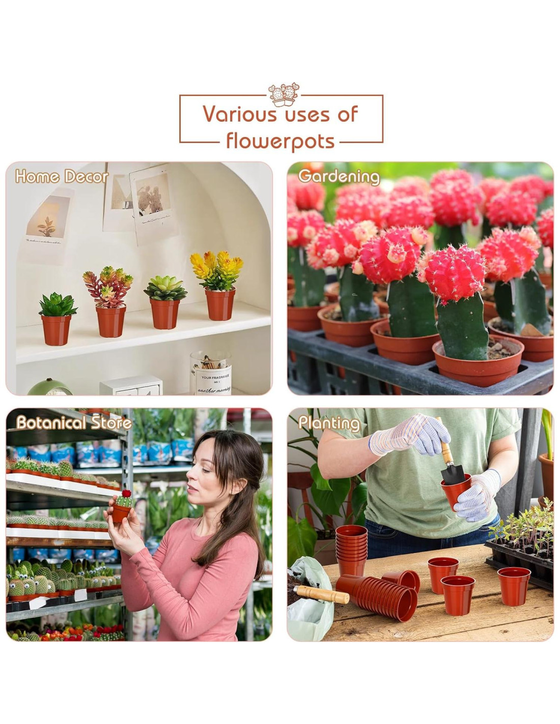 Cantidad: 200 piezas Material: plástico pp Tamaño: 2*2.08*1.45 pulgadas (5.08*5.28*3.68 cm) Color: Marrón rojizo Aplicación: -Para la germinación de semillas, cultivo de plántulas y propagación de hojas de suculentas -Venta al por menor en el mercado de flores, cultivo profesional en viveros, decoración de escritorio en casa