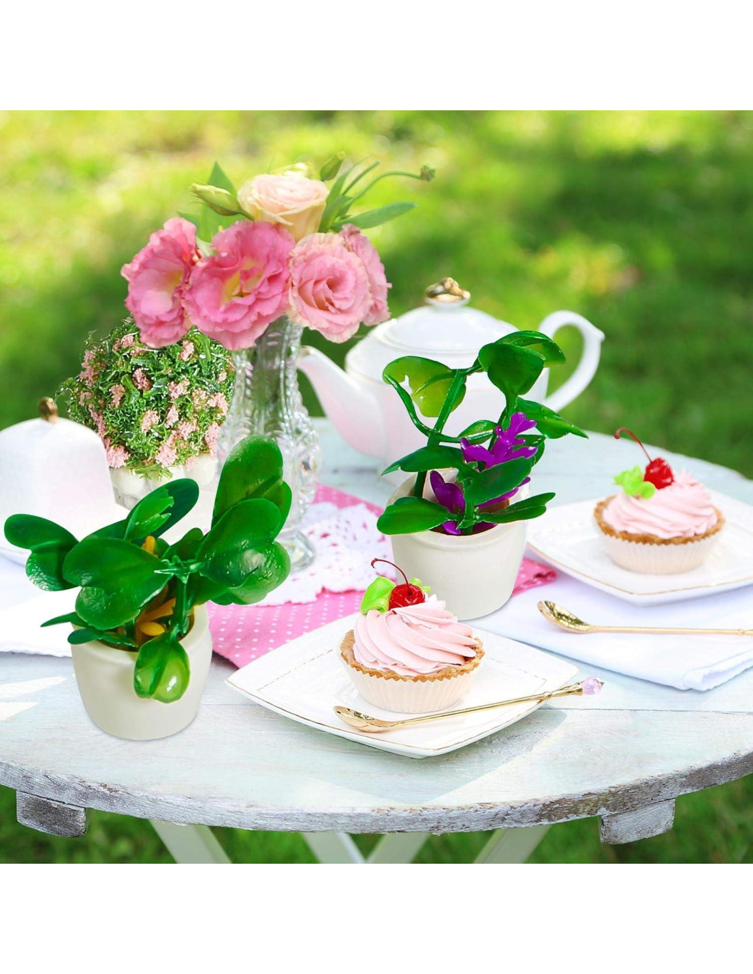 - Usos diversos: estas mini plantas en maceta son ideales para exhibir en mesas, escritorios, mesitas de noche, estanterías, armarios, alféizares, repisas de chimenea, mesas de café, mesas de comedor, cisternas, encimeras, estanterías o cualquier otro pequeño rincón que necesite vegetación, añadiendo más decoración a tu casa de muñecas