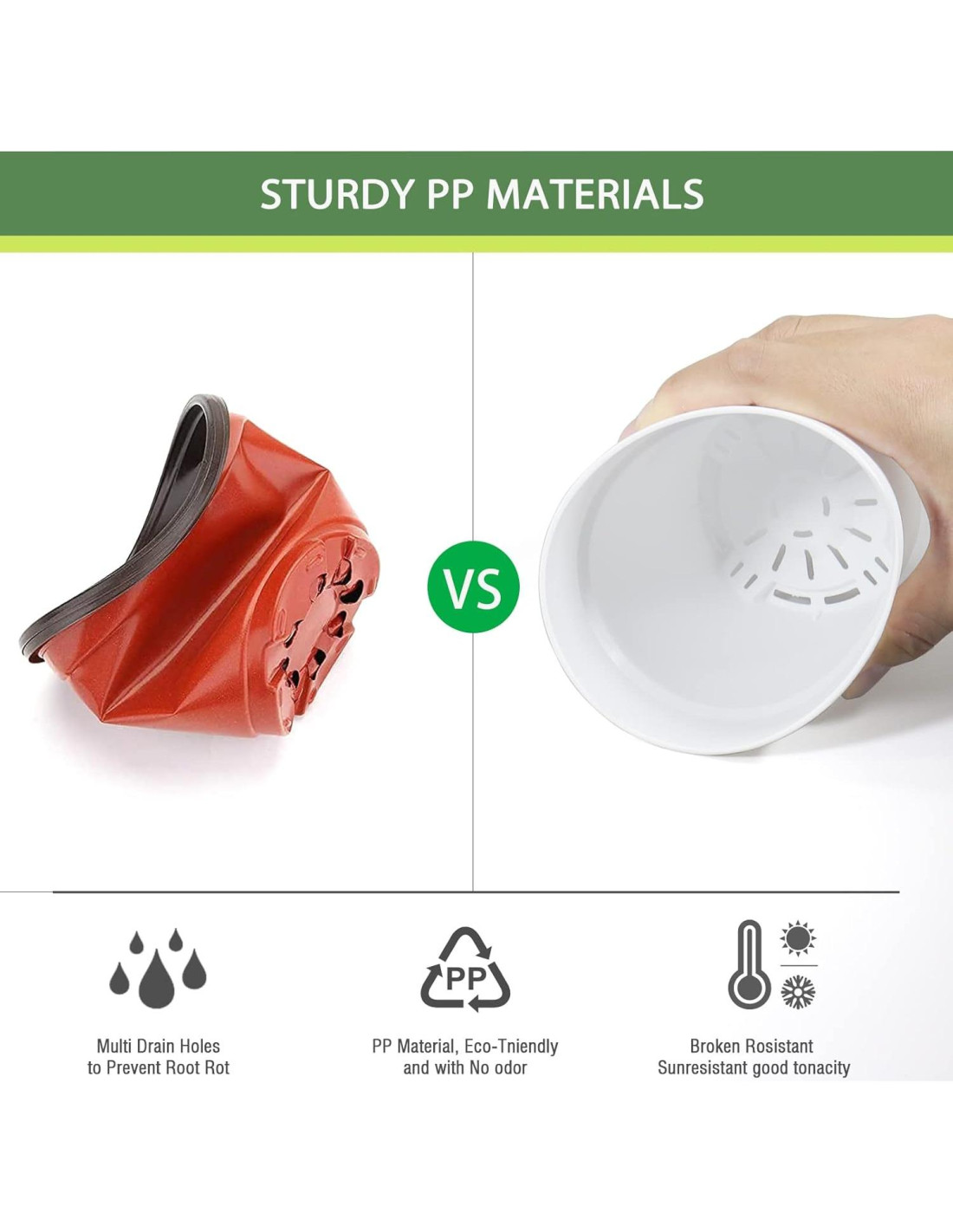 - Especificaciones de la maceta: macetas para vivero, el paquete incluye 12 macetas de 4 pulgadas para plantas, cada una con un plato, y tiene una capacidad de 1 pinta (0.47 litros). Las macetas de plástico con agujeros de drenaje y platos son más seguras que las de vidrio o cerámica, son ligeras y no se rompen fácilmente.