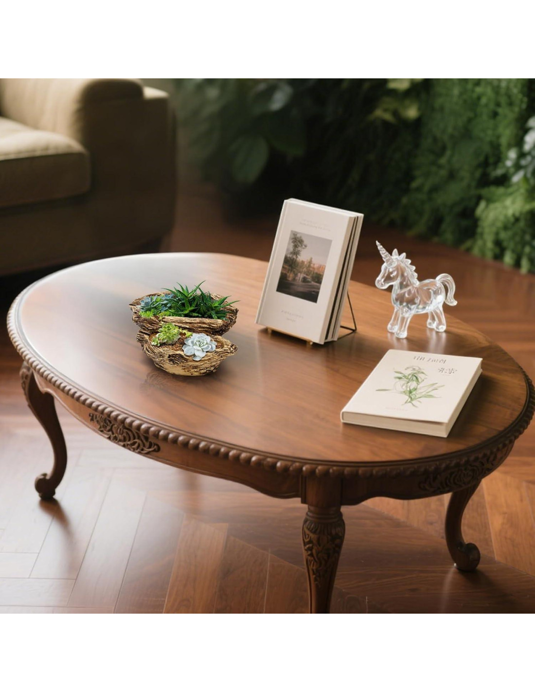 - Dimensión: La maceta de madera artificial mide 20.3cm x 13.5cm x 8.4cm. Las plantas y decoraciones no están incluidas.