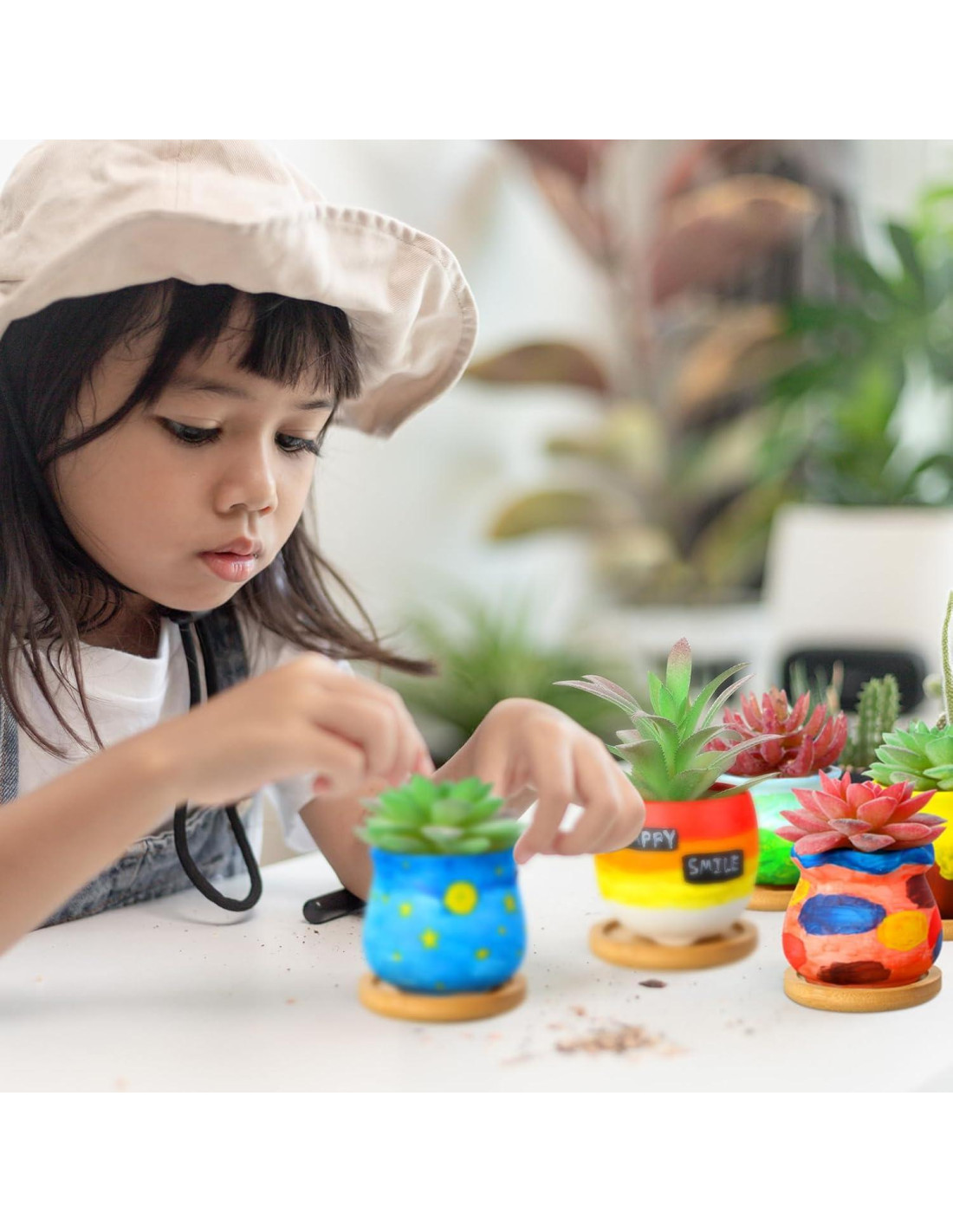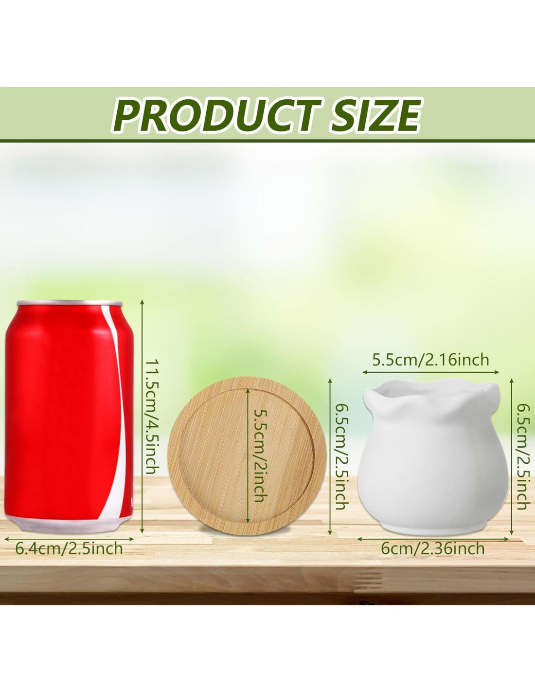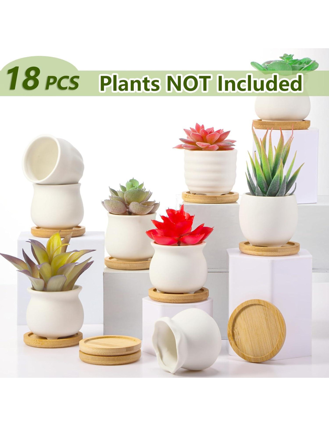 - El paquete incluye: recibirás 12 juegos de la maceta para plantas suculentas con orificio de drenaje, y cada maceta está equipada con una bandeja de planta redonda de bambú; hay 6 estilos diferentes para elegir, cantidad suficiente, el tamaño tiene una pequeña diferencia pero son todos similares; 2.5 x 2.15 Pulgadas (ancho x alto), que es ideal para sostener suculentas