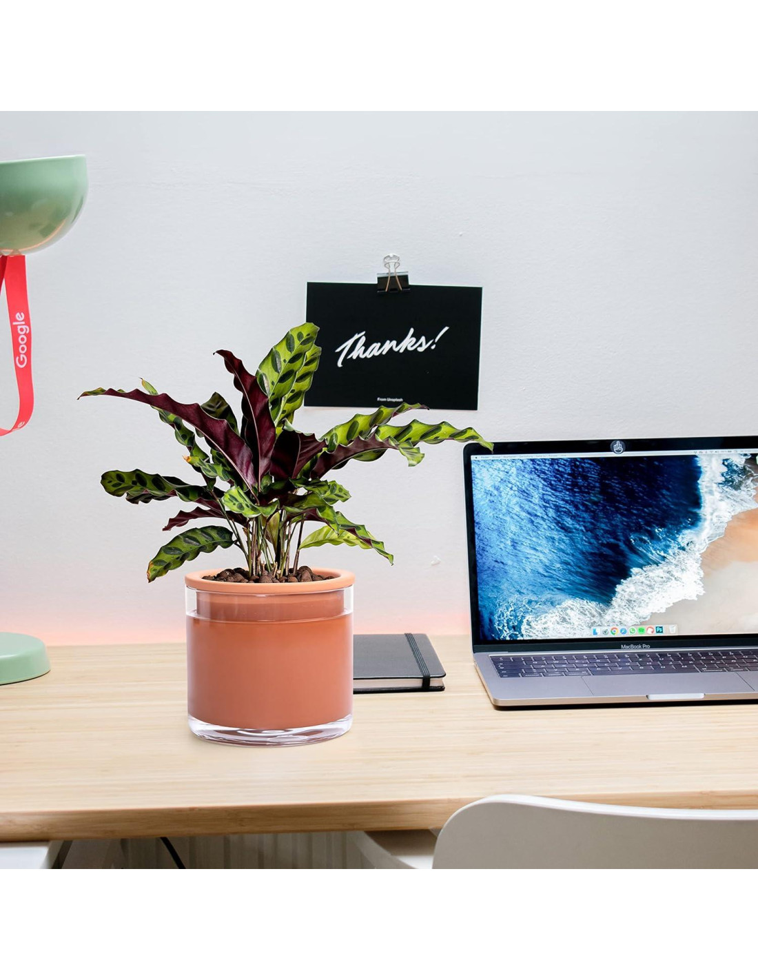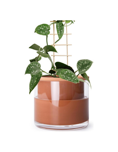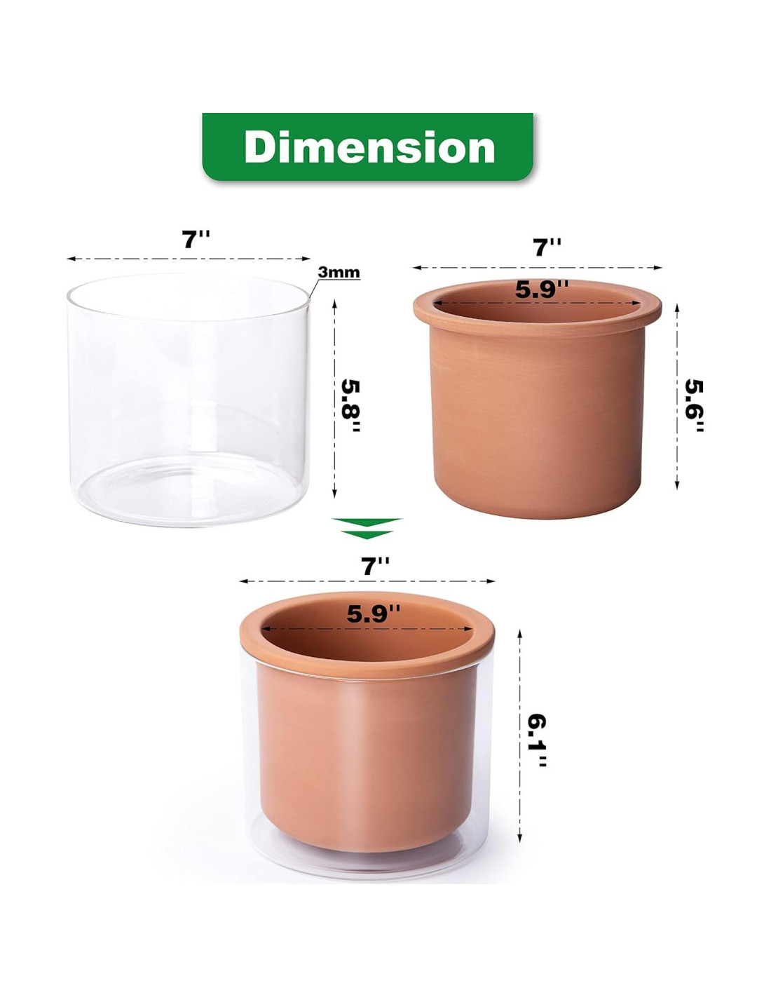 - Terracota + Vidrio: Elegante diseño moderno de maceta autorriego con ingenioso material de terracota natural transpirable y recipiente de vidrio transparente. Ve el exceso de agua con solo un vistazo.