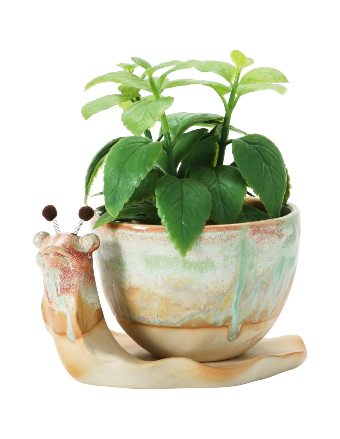 - La maceta de cerámica caprichosa con base de caracol tiene un acabado de esmalte reactivo neutro y viene en un juego de dos