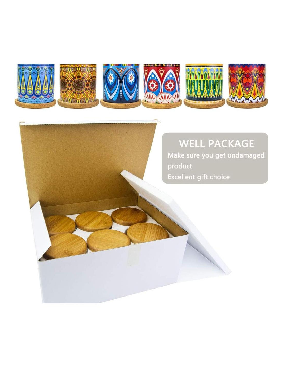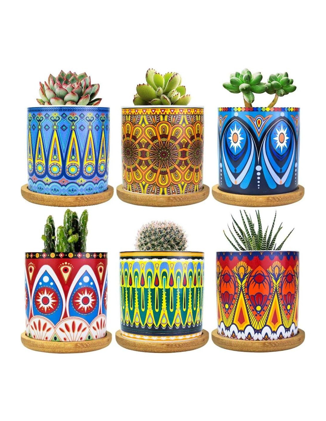 - Macetas de Suculentas Mandala - Obtendrás un paquete de 6 macetas con coaster de bambú. Diámetro interior de la maceta 6.35 cm (diámetro exterior 7.62 cm), diámetro del coaster de bambú 9.14 cm, grosor 1.02 cm. Nota: La planta no está incluida.
