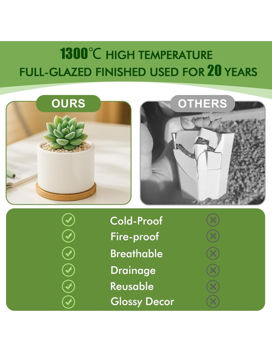 - Macetas de Cerámica Premium para Plantas: Las macetas ZOUTOG para suculentas son cocidas a alta temperatura a través de un proceso único, sin olor, duraderas, de apariencia blanca y elegante, y empaquetadas en una caja bien envuelta, adecuadas para cualquier escena.