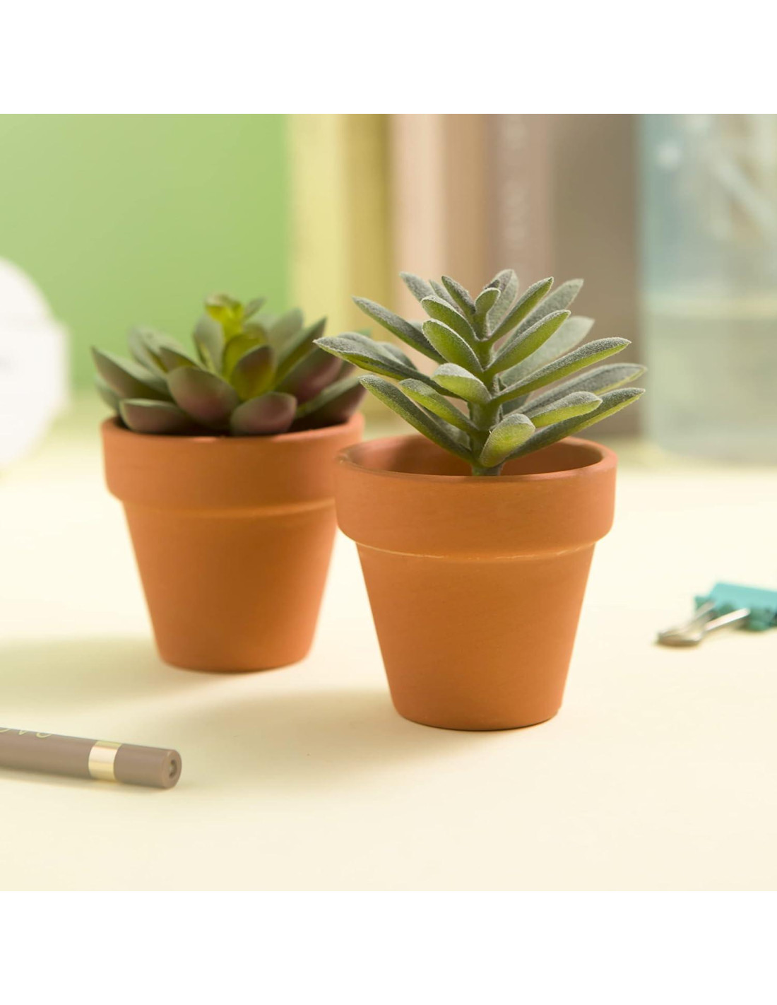 - Mini Macetas de Terracota: Este paquete de macetas de plantas en miniatura están hechas de arcilla y están diseñadas para suculentas y otras variedades de plantas pequeñas. Cada una se siente suave y natural al tacto.