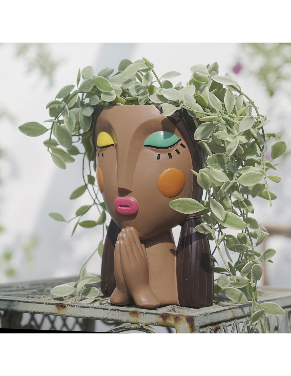 - [Maceta de Cara Única] Una atractiva maceta de cara de niña se convertirá en el centro de atención de tu jardín. Esta maceta decorativa para plantas de interior tiene una cara vívida con los ojos cerrados que se ve tan pacífica y tranquila, brindándote un estado de ánimo relajante.