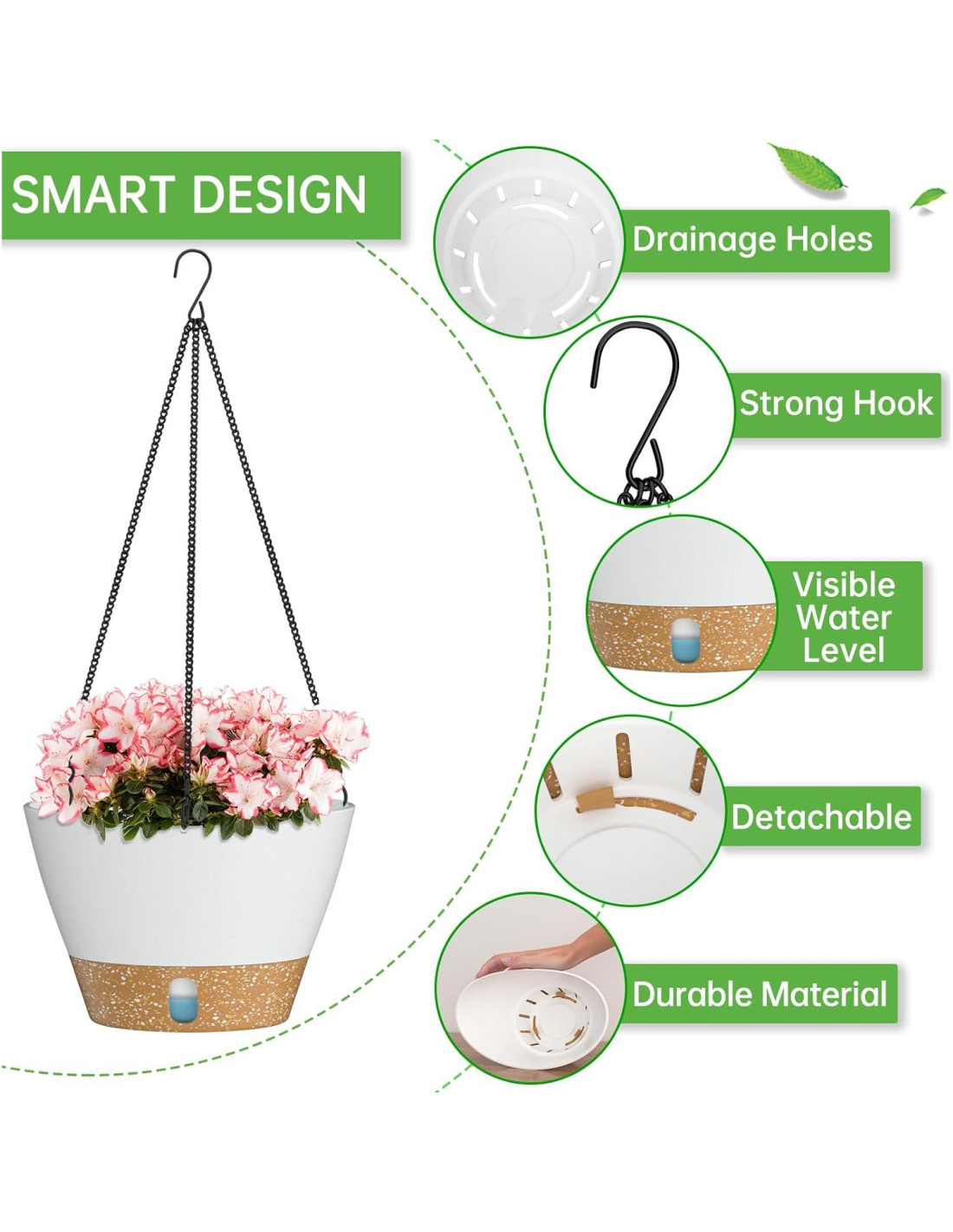 - Cadenas triangulares de super carga: Hechas de acero inoxidable, la larga cadena triangular no se oxidará en clima húmedo y es duradera, y la superficie está recubierta con un recubrimiento anti-óxido para proteger aún más la cadena de daños. Además, la cadena triangular con super rendimiento de carga aumenta la estabilidad de las macetas colgantes.