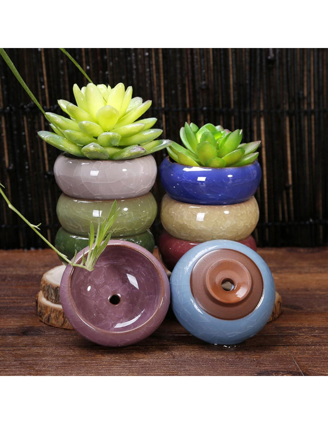 Las mini macetas están diseñadas con pequeños agujeros en la parte inferior, que ayudan a drenar el exceso de agua del suelo, previenen que las raíces se pudran y mantienen tu suculenta saludable. Nuestras pequeñas macetas están hechas de cerámica vidriada rica, que es suave, con textura abstracta, tiene un sentido estético y da un toque de fantasía a cualquier espacio. Las macetas de cerámica con esmalte de grieta de hielo son perfectas para la decoración del hogar, oficina, cafetería, pueden mostrar tu decoración de buen gusto.