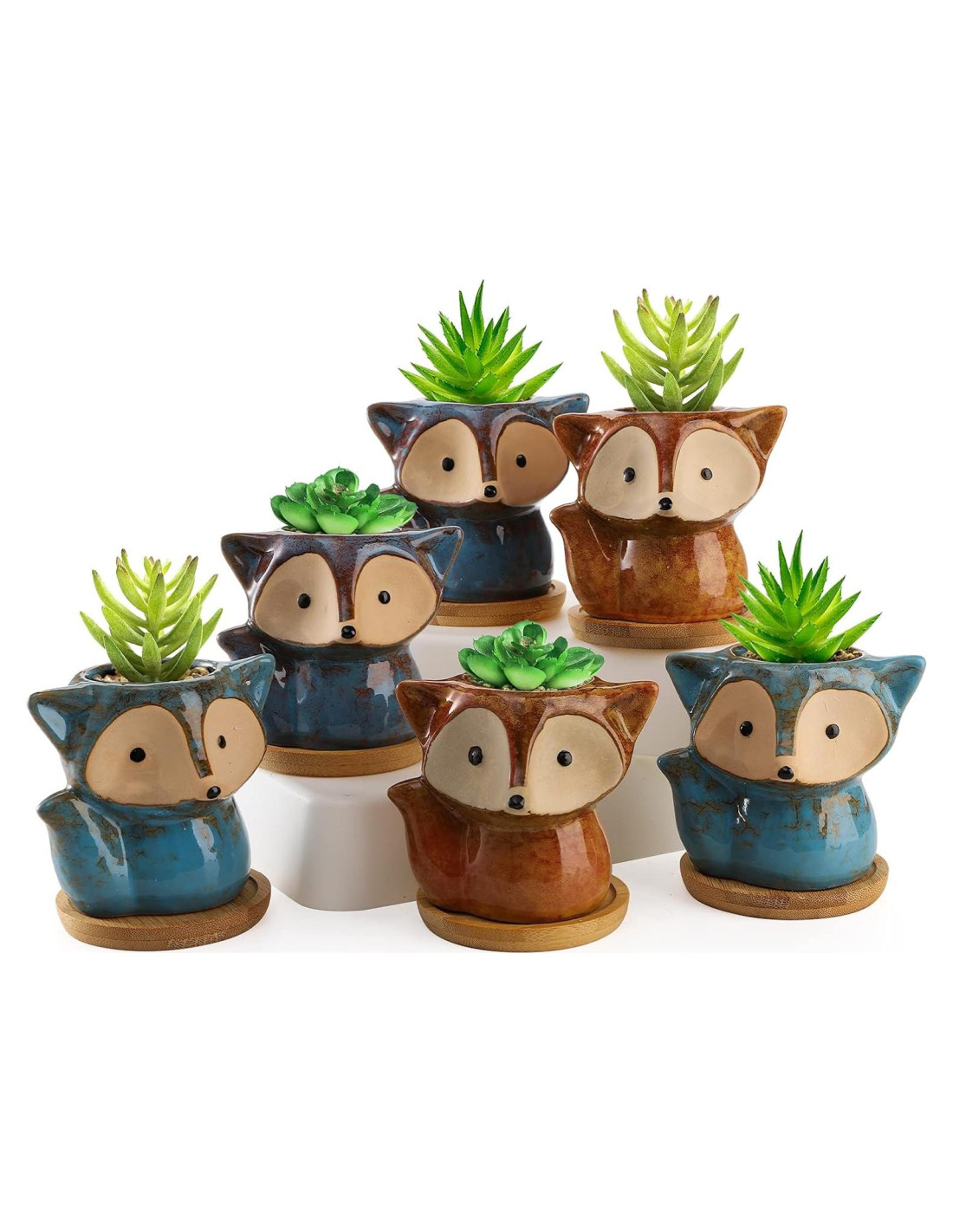 - Macetas Pequeñas y Lindas - Nuestras pequeñas macetas para suculentas están diseñadas en forma de zorro y tamaño pequeño, que son adecuadas para pequeñas suculentas, hierbas, bonsáis y otras plantas y flores pequeñas. Con estas lindas exhibiciones, traerá un estilo de moda, hermoso y adorable a la decoración de su hogar.