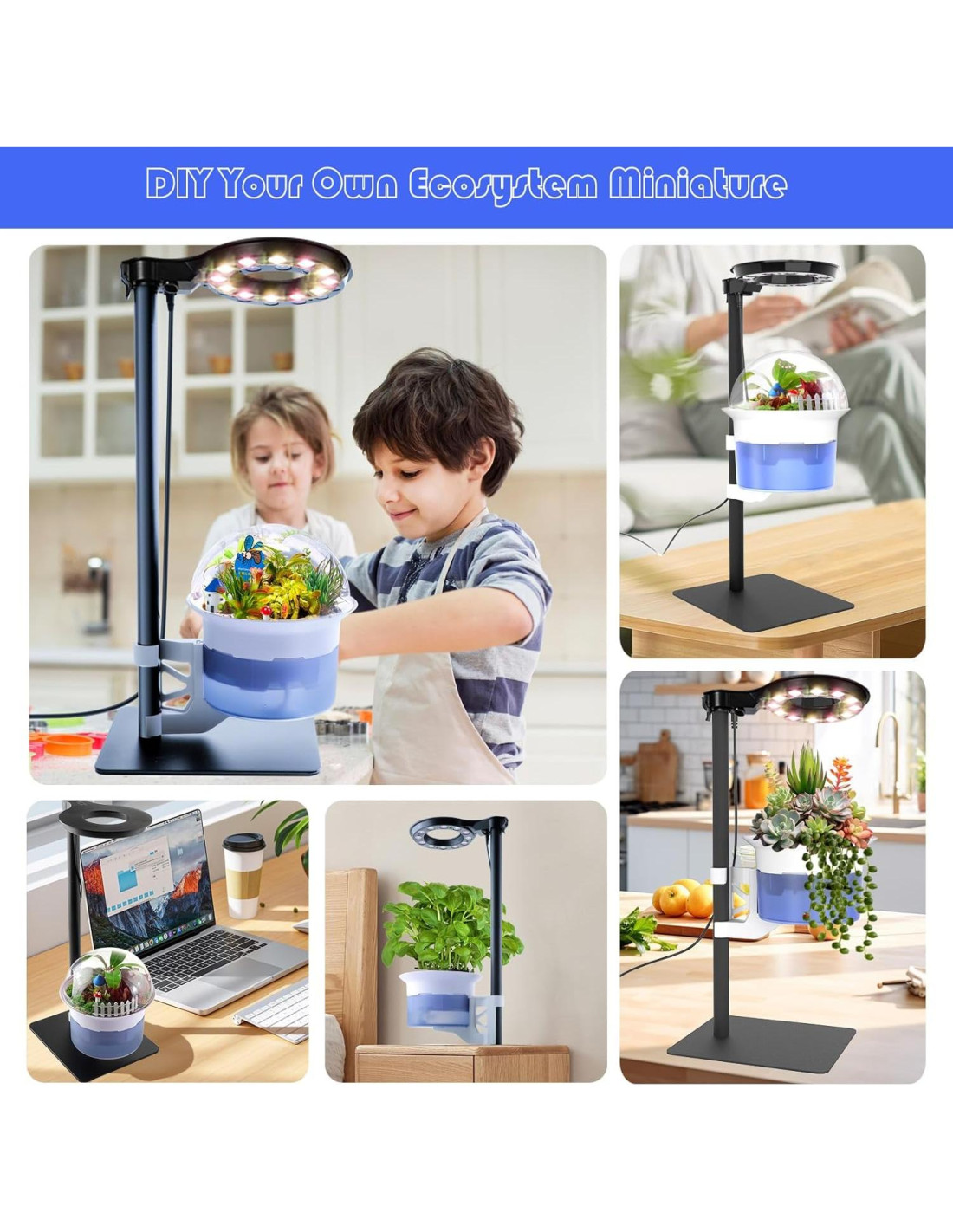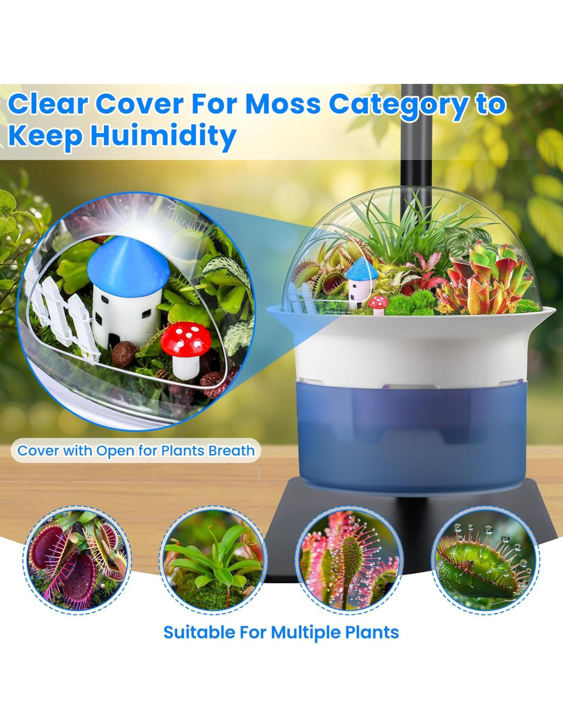 - - Versátil para Múltiples Tipos de Plantas: Este sistema es perfecto para una variedad de plantas, incluyendo suculentas, musgos, trampa venus, macetas de plantas carnívoras y pequeños jardines de hierbas interiores. Acomoda plantas de hasta 35 cm, lo que lo hace ideal para terrarios de trampa venus con luz de crecimiento u otros tipos de plantas pequeñas de interior, viene con una cúpula transparente, puedes ver tu propio mini paisaje, puede ser una luz de crecimiento para acuarios y un ecosistema autosostenible.