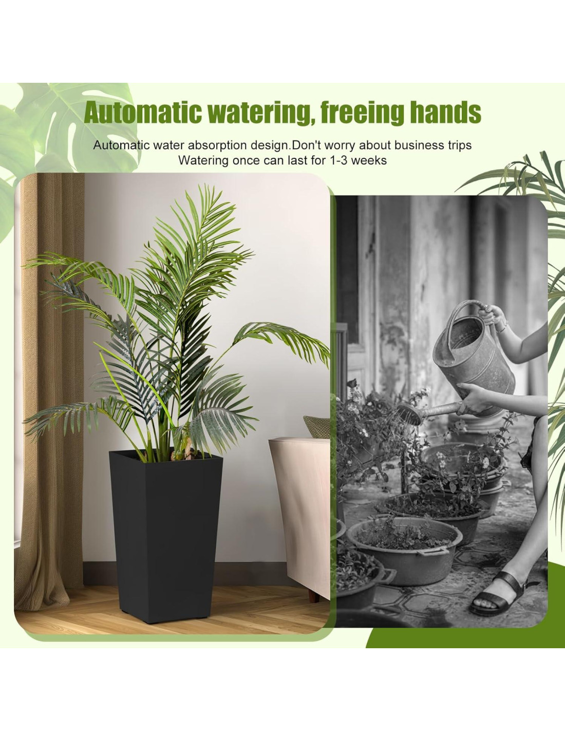 Descripción: Diseño Amigable: El diseño de nivel de agua visual es fácil de observar el volumen de agua restante para prevenir que las plantas se sequen y mueran. El cubo interior se puede levantar, lo que facilita el cambio de plantas. Modo de almacenamiento de agua de doble capa, especialmente diseñado para diseño interior, los cubos dobles son impermeables. Combina con Muchos Tipos de Plantas: Combina con muchos tipos de plantas como helechos, planta serpiente, pequeños árboles o plantas decorativas falsas. La Navidad se acerca, permítales realzar sus proyectos de decoración. Resistente a la Intemperie: La maceta alta está hecha de material de resina que resistirá la prueba del tiempo y el clima, sol intenso y temperaturas invernales severas, para usarla en interiores o exteriores. Buen Drenaje: Un buen drenaje es esencial al considerar el uso de macetas para plantas, esto permitirá que el exceso de agua drene, especialmente en espacios exteriores que enfrentan temporadas de lluvias intensas. La maceta tiene una bandeja de drenaje en la parte inferior para asegurar un buen drenaje, ese diseño también permite que la maceta almacene algo de agua para mantener las plantas hidratadas. Decorativa: Es una gran opción de contenedor cuando desea llevar algunas plantas a su porche delantero o decorar un espacio interior/exterior. Es una maceta universal para cualquier casa, césped, patio, porche o espacio de trabajo. Nombre del Artículo: Maceta Alta Material: Resina Características: Nivel de Agua Visual, Mango de Cubo Interior, Doble Hebilla Consejos: No necesita bandejas, no hay fuga de agua, se puede usar durante 1-3 semanas después de ser llenada con agua de una vez Detalles de Tamaño: L: 25.5cm/10.04", W: 30cm/11.81", H: 55cm/21.65" (Aproximadamente) Notas: Debido a la diferencia de luz y configuración de pantalla, el color del artículo puede ser ligeramente diferente de las imágenes. Por favor, permita una ligera diferencia de dimensión debido a diferentes mediciones manuales. El Paquete Incluye: Negro 1pc, Blanco 1pc: 1 x Maceta Alta 1 x Bandeja 1 x Barril Interior 1 x Medidor de Nivel de Agua o Negro 2pcs, Blanco 2pcs: 2 x Maceta Alta 2 x Bandeja 2 x Barril Interior 2 x Medidor de Nivel de Agua