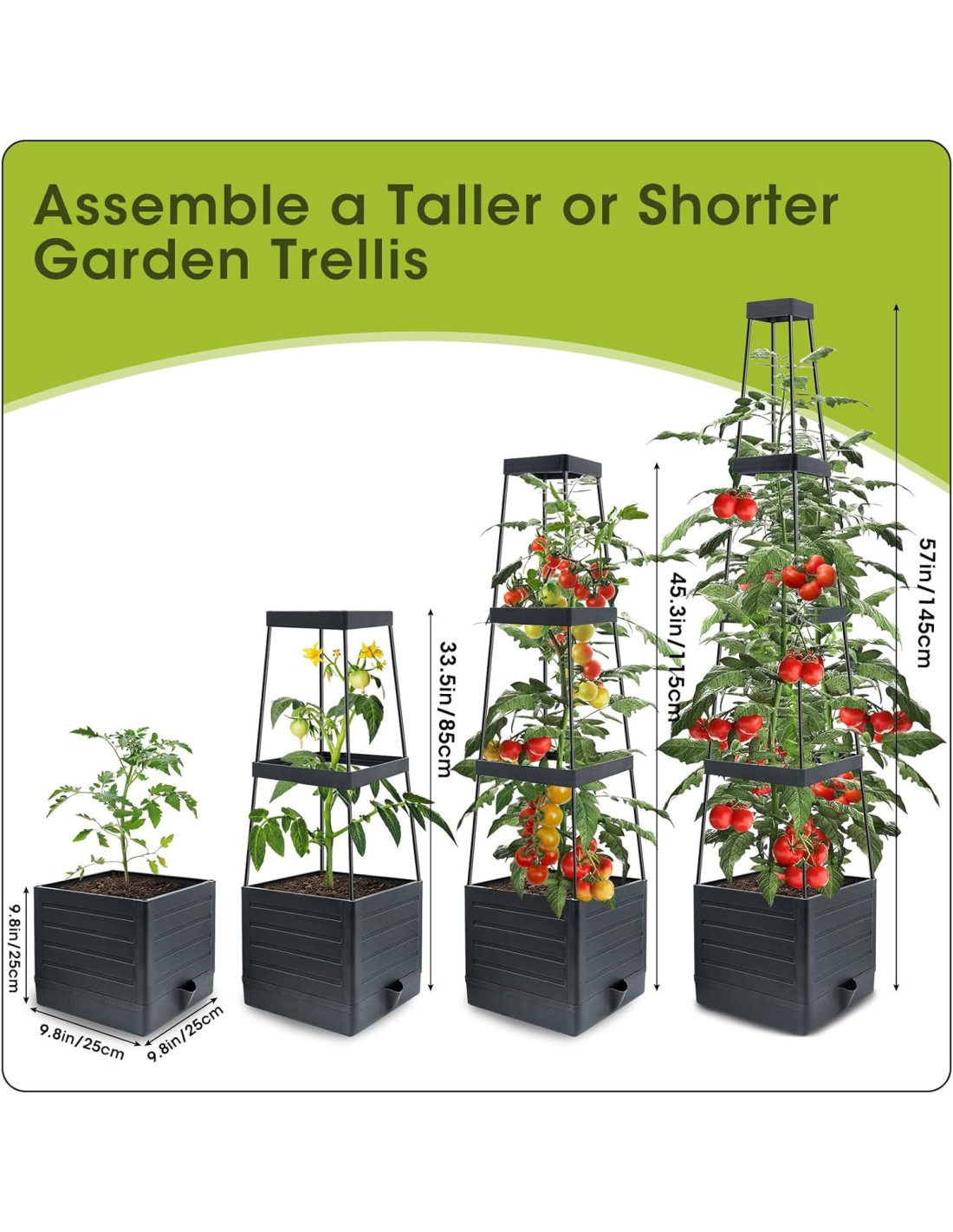 - FÁCIL DE ENSAMBLAR: No se necesitan herramientas, solo requiere un tiempo y esfuerzo mínimos para configurarlo. La maceta de tomate con jaula adopta un diseño de hebilla para un ajuste seguro. Alinea las hebillas y presiona libremente para instalar. Y puedes desmontar fácilmente el soporte para un almacenamiento fácil y ahorro de espacio.