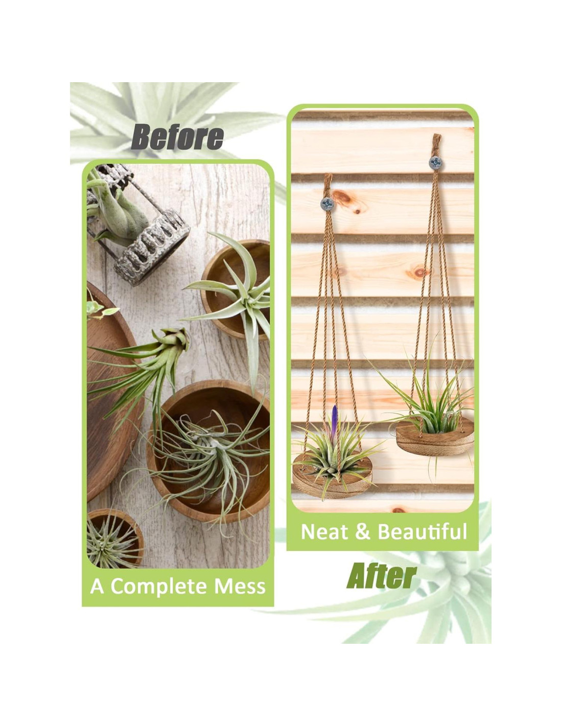 - [Confiables y Duraderos] Estos colgantes para plantas de aire hechos de madera de calidad son gruesos y resistentes a la humedad. Cuatro cuerdas de yute son tan fuertes que no tienes que preocuparte por que se rompan. Creemos que servirán durante mucho tiempo.