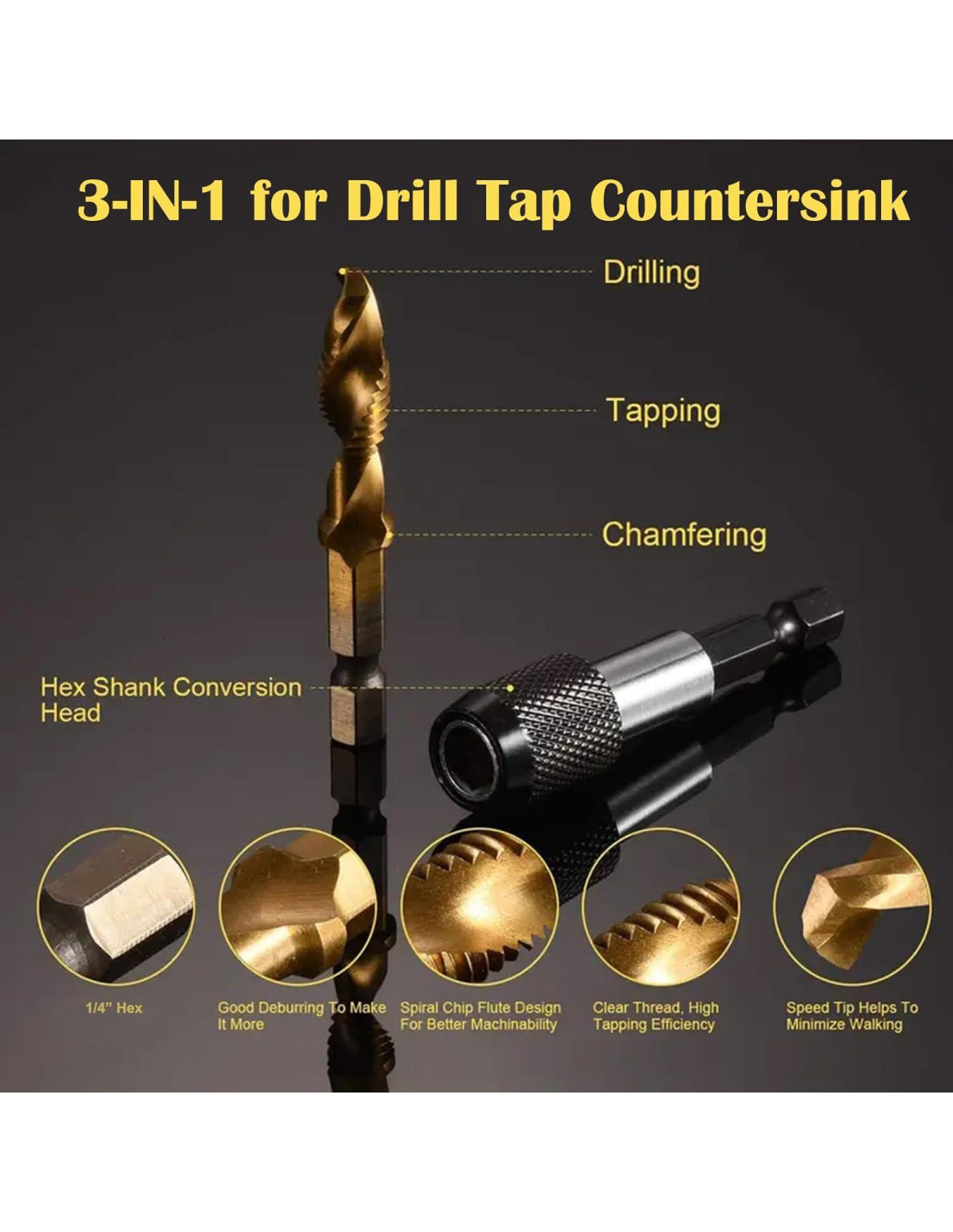 - Calidad premium: Fabricado en acero de alta velocidad recubierto de titanio, nuestras brocas y machos están construidos para durar. La construcción duradera asegura un rendimiento prolongado y una precisión excepcional. Puedes confiar en este juego para ofrecer resultados consistentes cada vez