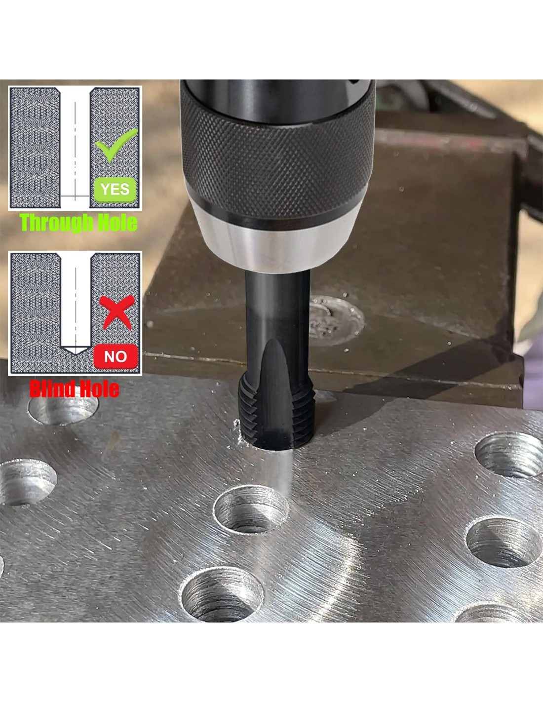 - Perfecto para cortar nuevas roscas o reparar roscas dañadas, ideal para perforar y roscar aluminio, acero inoxidable, plásticos duros y más.