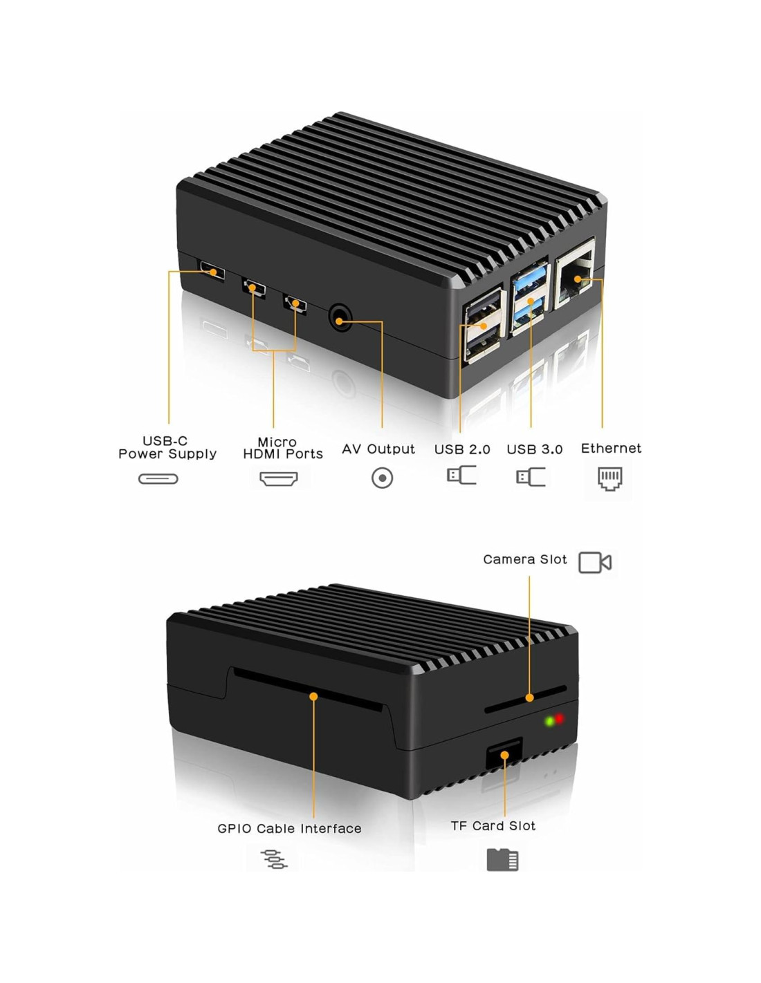 - Acceso a todos los puertos de Raspberry Pi 4 Modelo B, la interfaz del cable GPIO está reservada, soporta la instalación del cable GPIO. Reserva la ranura para tarjeta TF para un fácil acceso