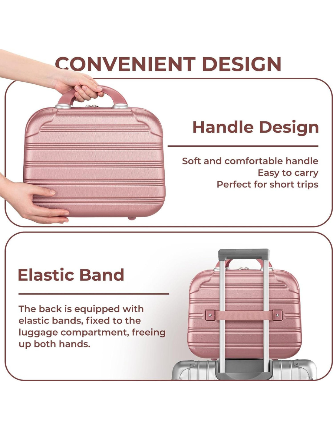 - [Estuche de Maquillaje Mini Ultra-Portátil] -- Midiendo 34 x 15 x 26 cm (13.4 x 5.9 x 10.2 pulgadas), esta maleta de maquillaje mini de 14 pulgadas con carcasa dura presenta un diseño ligero pero duradero. Se adapta fácilmente a maletas, mochilas o equipaje de mano. El mango suave y la correa elástica en la parte posterior ofrecen opciones de transporte dual para viajes portátiles, puedes elegir la forma que prefieras. Perfecto estuche de viaje cosmético para organización en movimiento