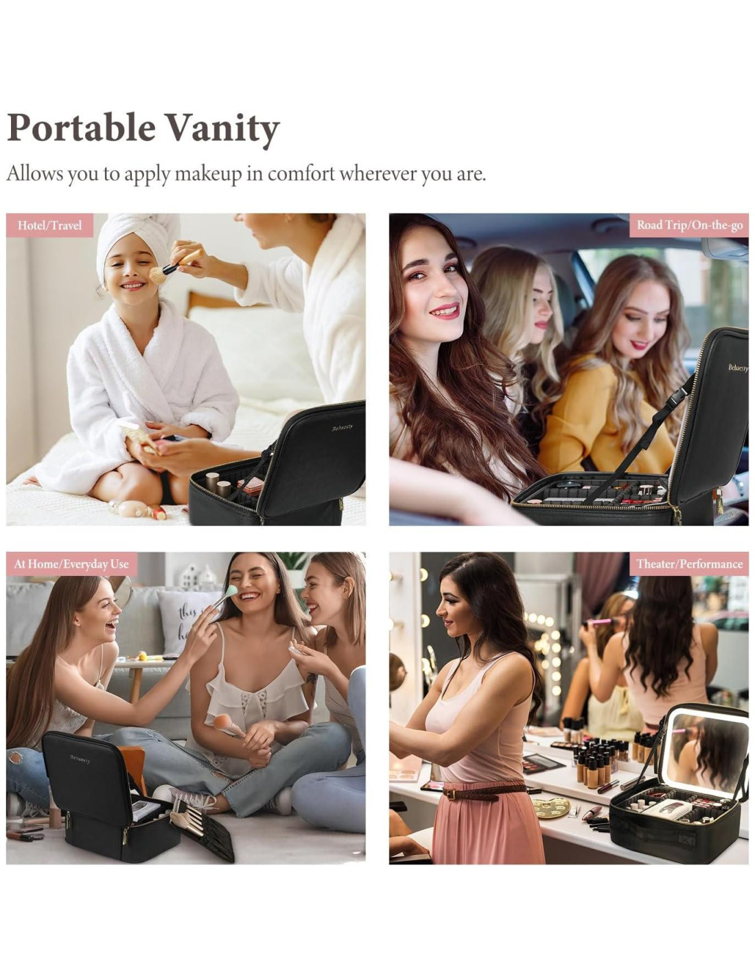 - [Bolsa de Maquillaje Portátil con Espejo] Bolsa de maquillaje de viaje de gran capacidad Behaesty hecha de cuero PU, que es impermeable, duradera y fácil de limpiar. El espejo cosmético de plata de 4K está instalado en la tapa de este estuche de maquillaje para ofrecerte una imagen de muy alta definición mientras te maquillas. Ya sea que estés viajando o fuera por negocios, puedes llevar esta caja de maquillaje a todas partes.