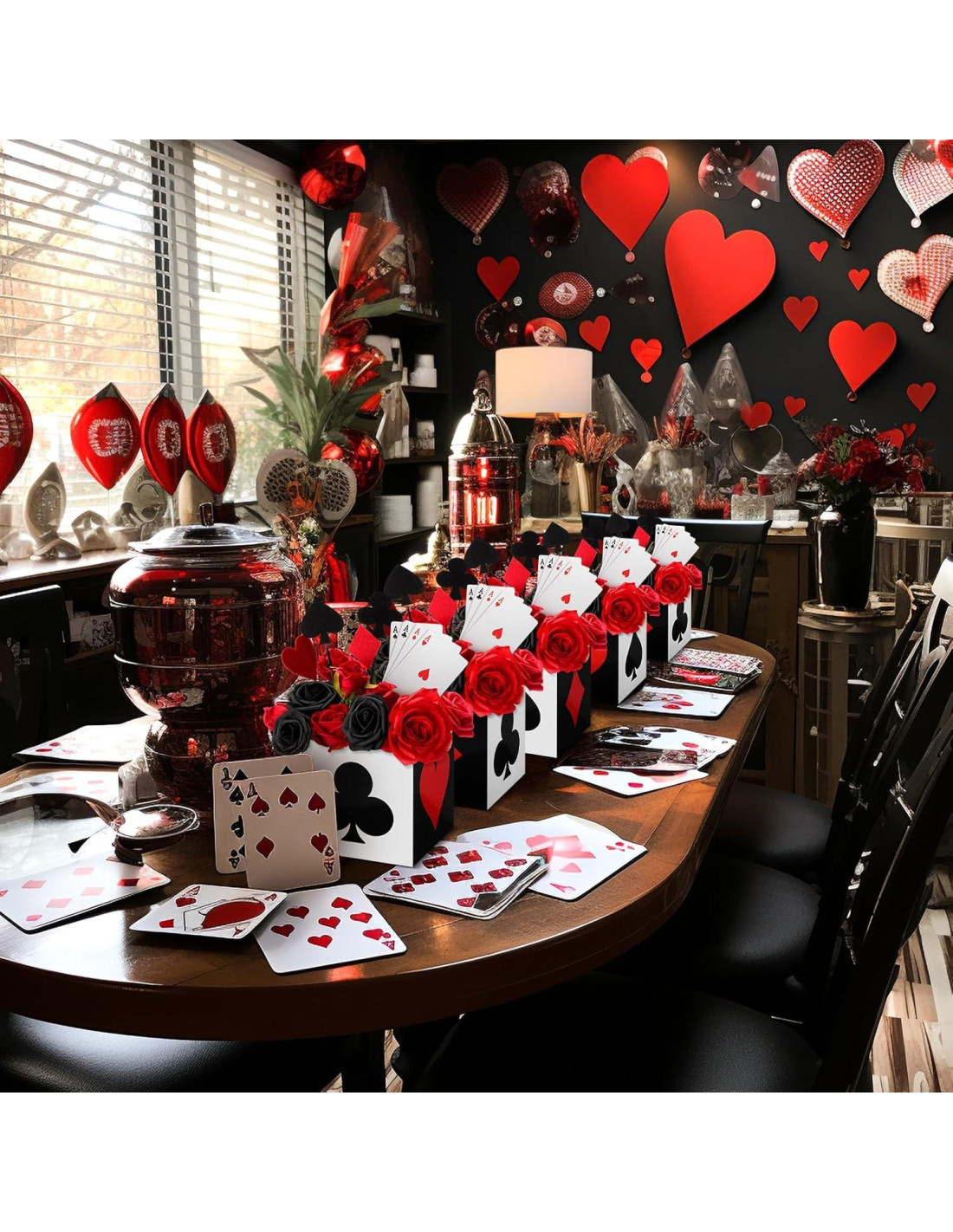 - Temática de Casino para Eventos Divertidos: con colores blanco, negro y rojo que replican el diseño de las cartas de póker, estas cajas de póker añaden instantáneamente un ambiente divertido e inspirado en el casino a tu evento; Las cajas son un elemento ideal para eventos temáticos de casino, noches de póker y crear una atmósfera de juego