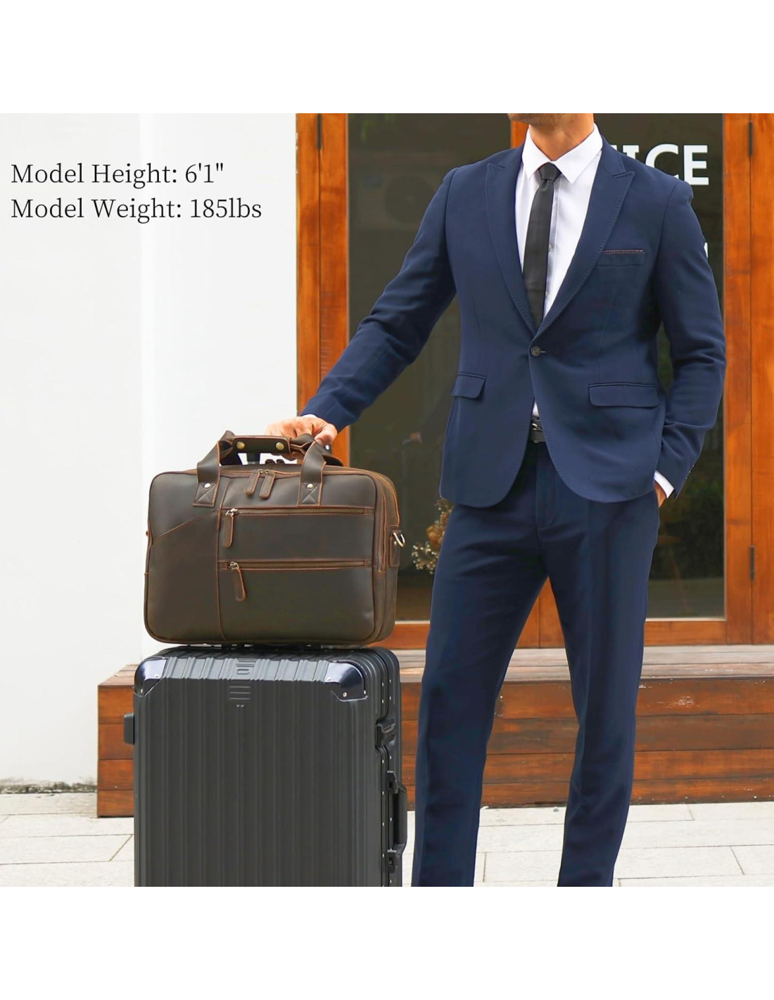 - [Múltiples Formas de Transporte y Uso] El maletín de cuero para hombres es una bolsa de oficina profesional para trabajo, reuniones de negocios, viajes y uso diario. Puede llevarse como bolso de mano, bolsa bandolera o bolsa de hombro. Puede ser un maletín para computadora portátil de 15.6 pulgadas, bolsa mensajera cruzada, bolsa de hombro diaria, tote para profesores o maletín para abogados. Su elección de regalo para cumpleaños, aniversarios, día de San Valentín, día del padre, Navidad y año nuevo.
