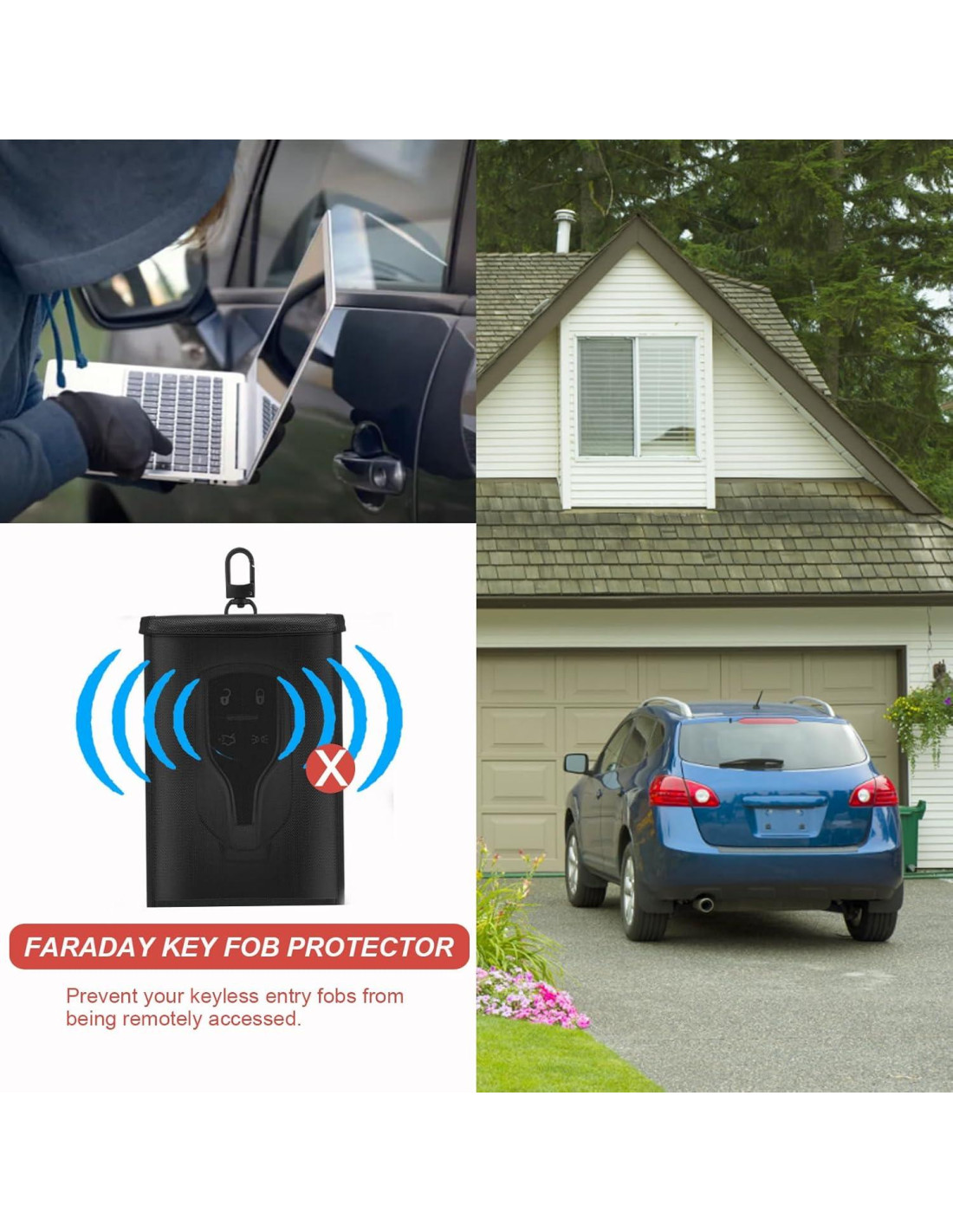 - PROTECTOR DE LLAVE FARADAY RFID: Si tu auto tiene entrada sin llave, es posible que la señal de tu llave pueda ser robada por hackers y ladrones de autos podrían robar tu auto sin que estés presente. Nuestra jaula faraday para llaves tiene justo lo que necesitas para bloquear esta señal, protegiendo la señal de tu llave de miradas curiosas y deteniendo el acceso remoto a tus llaves de entrada sin llave. No es necesario considerar el modelo y la marca. Y nuestra bolsa de bloqueo de señal para llaves protege señales de todos los dispositivos que se pueden poner en ellas.