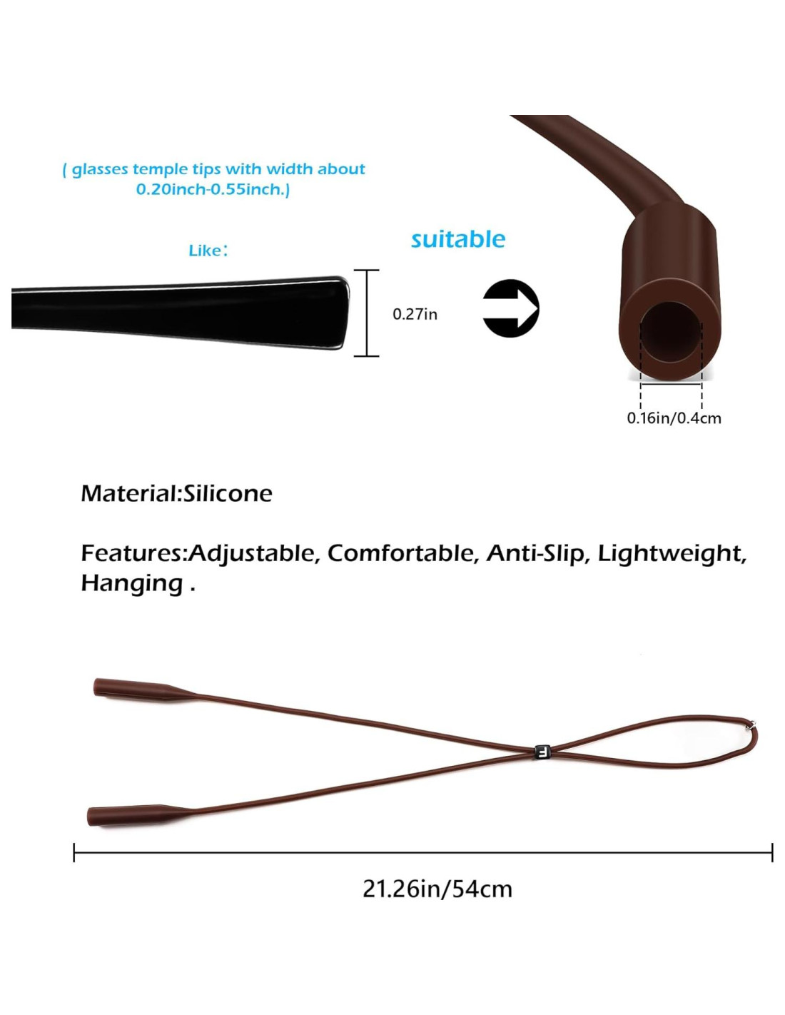 - [Ajustable] Esta cuerda tiene una hebilla ajustable que adapta la cadena de la correa de las gafas a tu tamaño de cabeza para evitar que tus gafas se caigan.